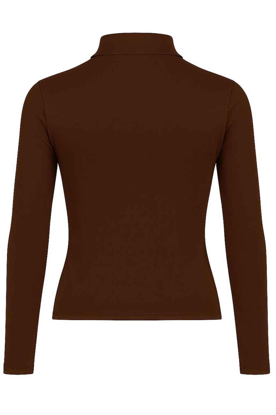 Bluzka golf brązowy to idealna propozycja dla kobiet ceniących elegancję w minimalistycznym wydaniu. Uszyta z delikatnej, naturalnej dzianiny o jedwabiście miękkim chwycie, bluzka ta zapewnia pełen komfort noszenia i idealne dopasowanie do sylwetki. Zastosowany w tym modelu golf delikatnie otuli szyję i nada każdej stylizacji szyku i subtelnego wyrafinowania. Długie, smukłe rękawy bluzki golf brązowej oraz jej dopracowany krój sprawiają, że model ten zaprezentuje się harmonijnie zarówno w zestawieniu zarówno ze spodniami, jak i spódnicami. Szlachetny odcień brązu tej bluzki podkreśli ciepło karnacji i skomponuje się z paletą różnych barw, od jasnych, po ciemne. Bluzka golf brązowy łączy w sobie prostotę i klasę, tworząc bazę dla wielu stylowych kompozycji. PROSTOTA I KLASA!