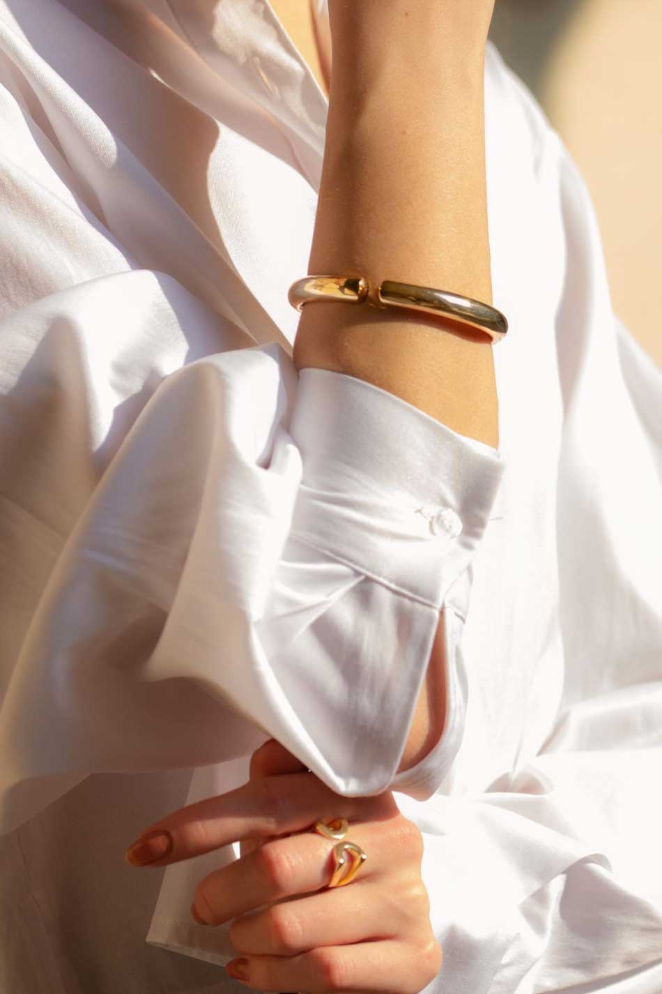 Bransoletka Flos pozłacana 18-karatowym złotem to wyraz ponadczasowego stylu i precyzji, który łączy w sobie elegancję klasyki z nowoczesnym charakterem. Jej subtelnie zaokrąglony kształt i wyważone proporcje doskonale podkreślą delikatność kobiecego nadgarstka i wzbogacą nawet najbardziej wymagającą stylizację, tworząc efekt biżuterii, która przyciąga uwagę, nie tracąc przy tym swojej lekkości. Wykonana ze srebra próby 925 i pokryta szlachetną warstwą 18-karatowego złota bransoletka ta emanuje ciepłym, luksusowym blaskiem, a jej powierzchnia zachwyca gładkością i perfekcyjnym połyskiem. Wnętrze bransoletki Flos pozłacanej 18-karatowym złotem zdobi misterny, ręcznie wykonany grawer, który dodaje jej wyjątkowego charakteru i podkreśla kunszt rzemieślniczego wykonania. Półsztywna forma tego dodatku doskonale dopasowuje się do nadgarstka, zapewniając komfort noszenia i elegancki wygląd w każdej sytuacji. Bransoletka Flos pozłacana 18-karatowym złotem to idealny wybór dla kobiet, które cenią dyskretny luksus, ponadczasową prostotę i detale, które tworzą prawdziwą biżuteryjną opowieść. "BIŻUTERYJNA OPOWIEŚĆ"!
