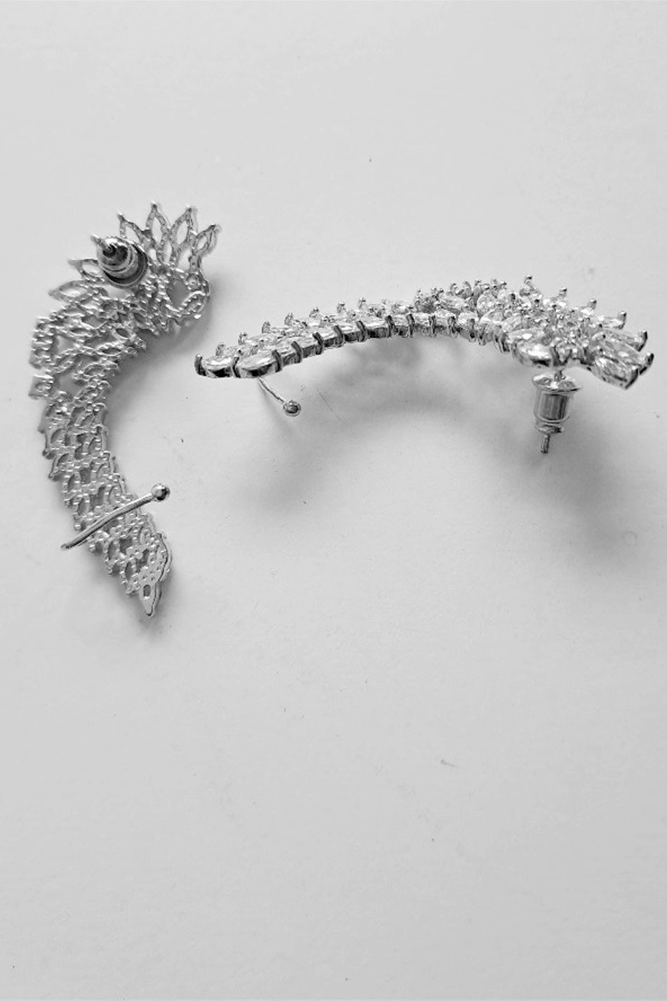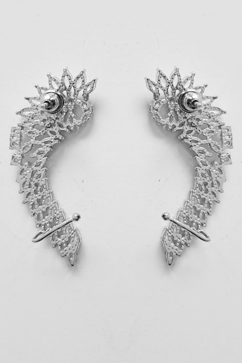 Kolczyki nausznice Silver I to biżuteria, która przyciągnie wzrok i doda każdej stylizacji wyjątkowego charakteru. Kolczyki te zaprojektowane zostały w formie delikatnych skrzydeł, których kształt harmonijnie dopasuje się do linii ucha. Na metalu antyalergicznym, z którego wykonane zostały te nausznice, osadzone zostały migoczące, drobne kryształki i całość ta tworzy efekt świetlistej tafli, pięknie odbijającej światło przy każdym ruchu. Lekka konstrukcja sprawi, że kolczyki nausznice Silver I będą wygodne w noszeniu nawet przez cały dzień, a zarazem staną się nietuzinkowym akcentem, który podkreśli indywidualny styl ich właścicielki. Biżuteria ta idealnie sprawdzi się zarówno w eleganckich, jak i nowoczesnych zestawieniach, dodając im blasku i subtelnej elegancji. "SKRZYDLATE" PIĘKNO!