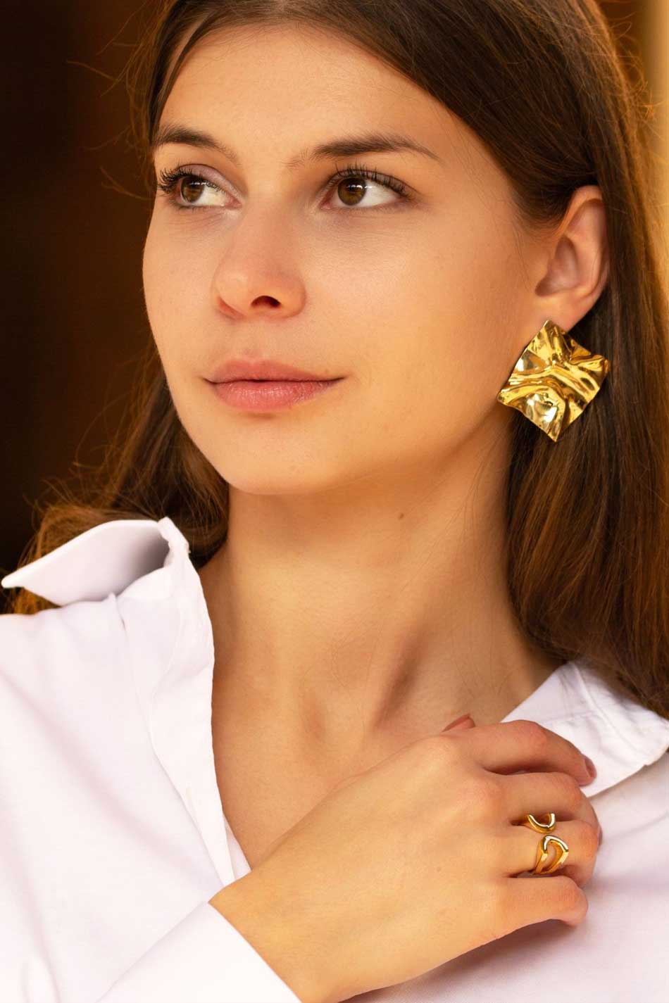 Kolczyki Oasi pozłacane 18-karatowym złotem to połączenie współczesnego designu z kunsztem jubilerskiego rzemiosła. Ich unikalna, organiczna forma inspirowana jest naturą i przypomina zmięty fragment pozłacanego srebra uformowany przez artystę w zmysłową, przestrzenną rzeźbę. Każdy detal tej biżuterii powstaje w wyniku precyzyjnej, ręcznej obróbki, dzięki czemu każda para kolczyków Oasi ma niepowtarzalny charakter i subtelnie różni się fakturą. Kolczyki Oasi pozłacane 18-karatowym złotem wykonane zostały ze srebra próby 925 i pokryte grubą warstwą 18-karatowego złota, które nadaje im ciepłego, szlachetnego blasku i wyrafinowany charakter. Powierzchnia tego dodatku delikatnie odbija światło, tworząc efekt miękkiego połysku, a zarazem podkreślając jego artystyczny wymiar. Lekka konstrukcja sprawia, że kolczyki te pozostaną wygodne nawet przy dłuższym noszeniu. Kolczyki Oasi pozłacane 18-karatowym złotem to biżuteria, która z pewnością stanie się centralnym punktem każdej stylizacji – dodając elegancji, pewności siebie i subtelnego luksusu. ARTYSTYCZNY LOOK!
