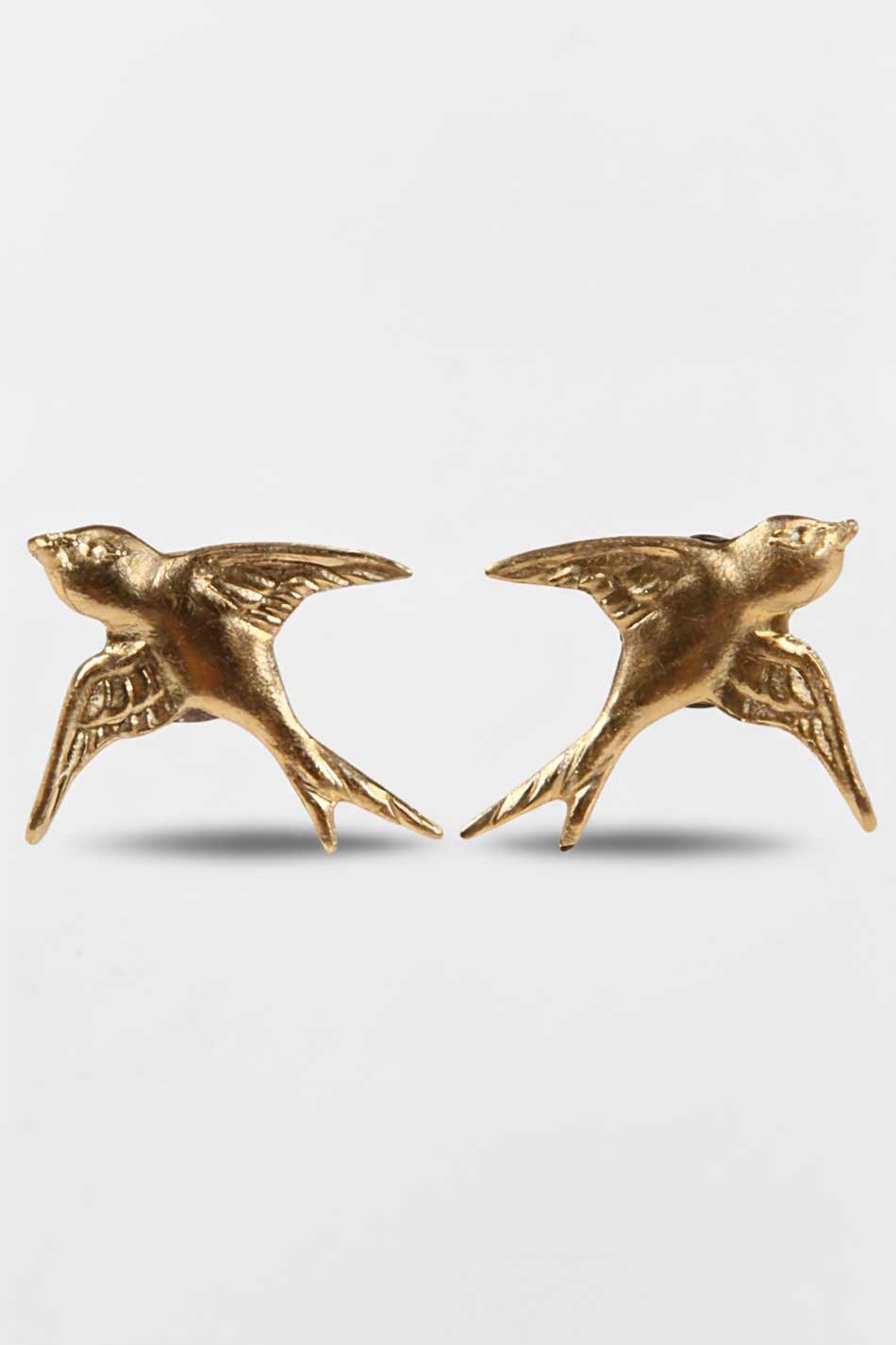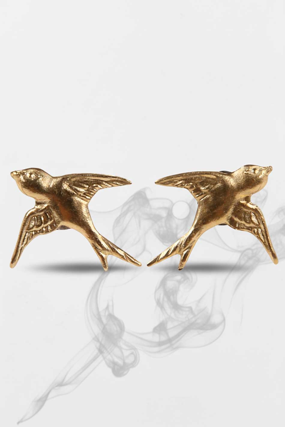 Minimalistyczne, ale przepiękne kolczyki ptaszki wykonane z mosiądzu w kolorze złotym. Kolczyki te mają niespotykany i cieszący oko wzór. Znakomicie sprawdzą się one, jako uzupełnienie i wyróżnienie każdej, nawet najbardziej unikalnej, stylizacji. NADZWYCZAJNE!
