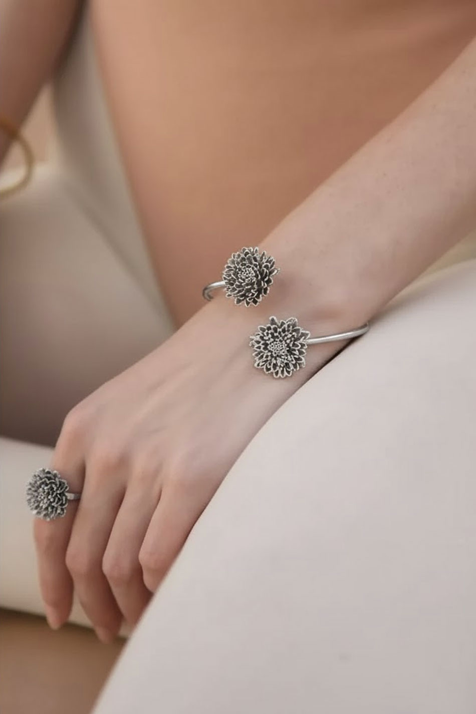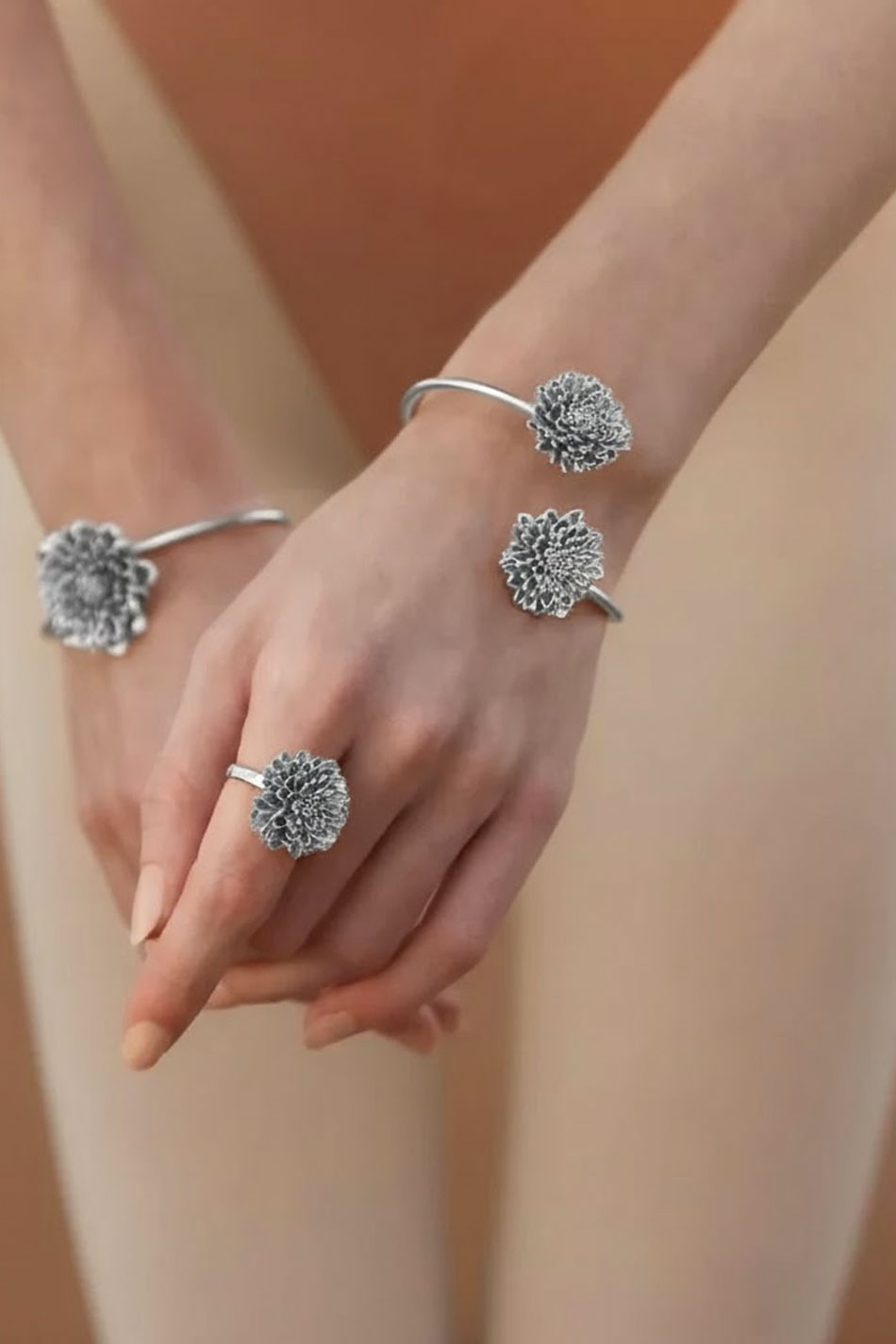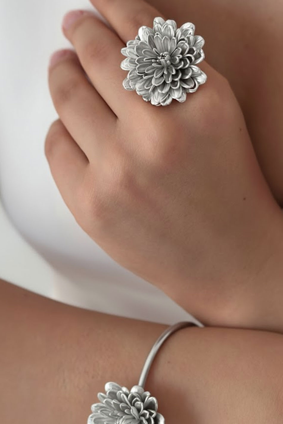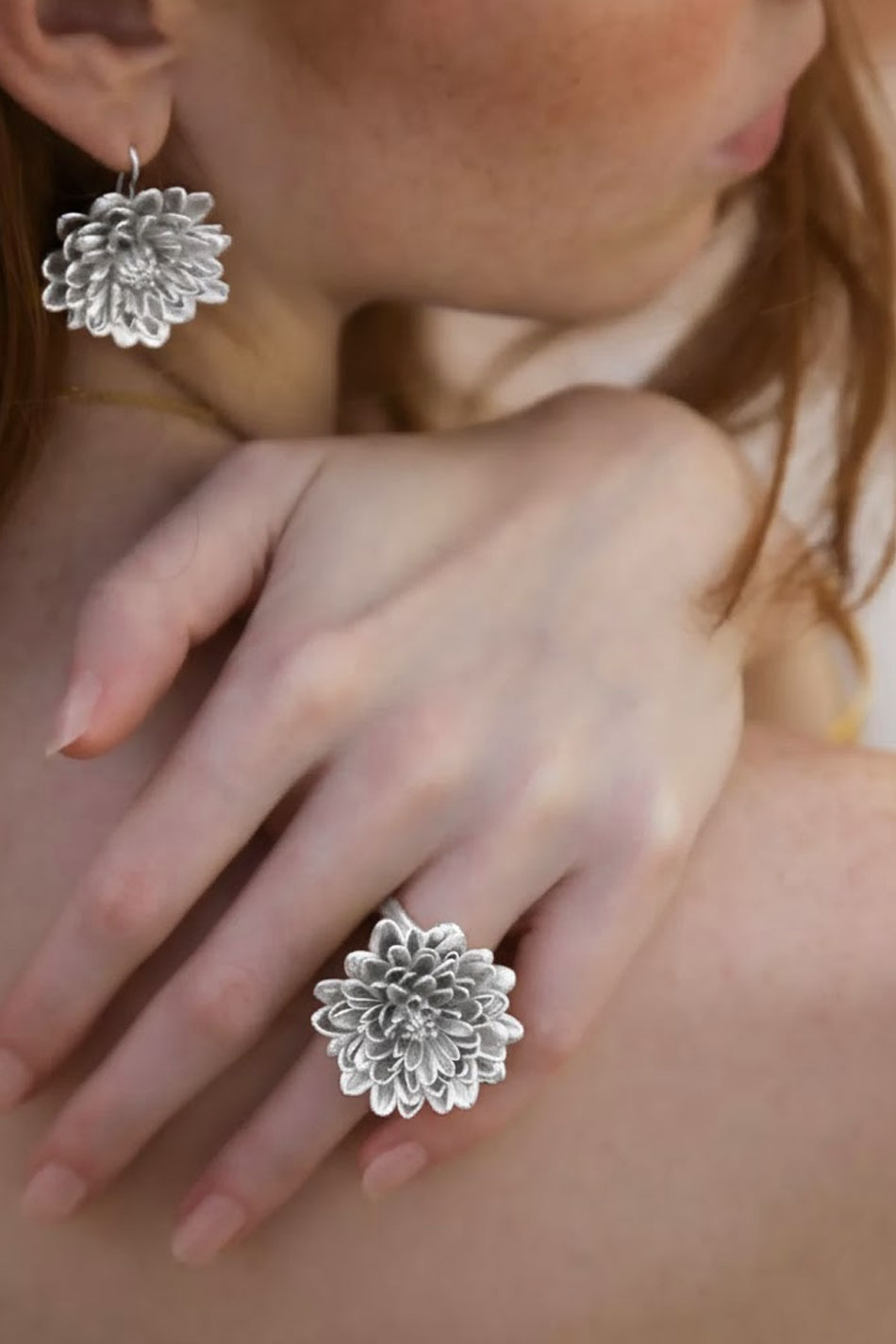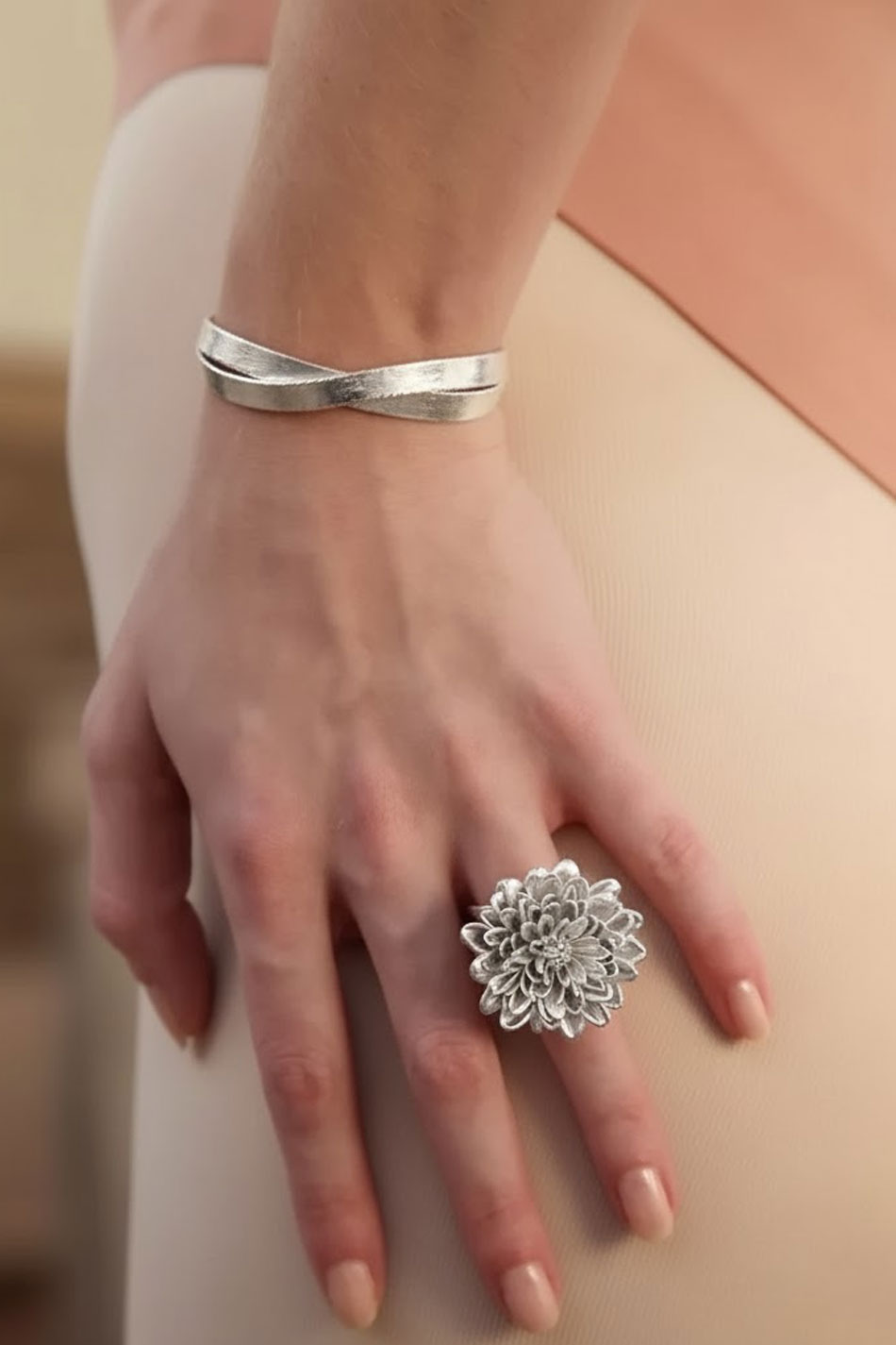 Oryginalny pierścionek z kwiatuszkiem pokrytym czystym srebrem próby 1000 i 925. COŚ PIĘKNEGO!