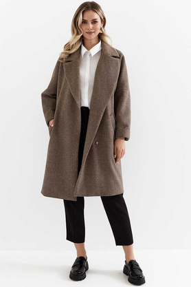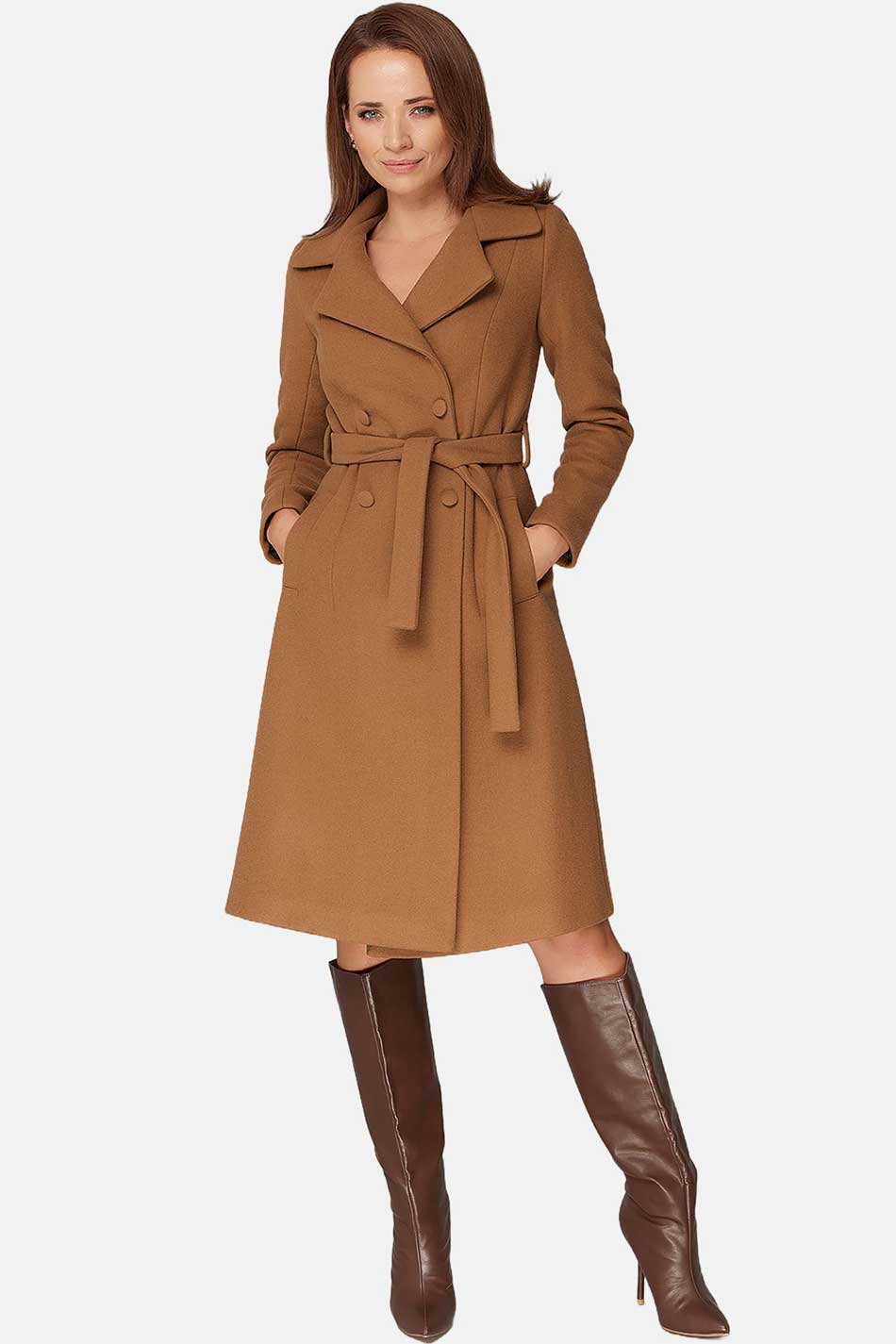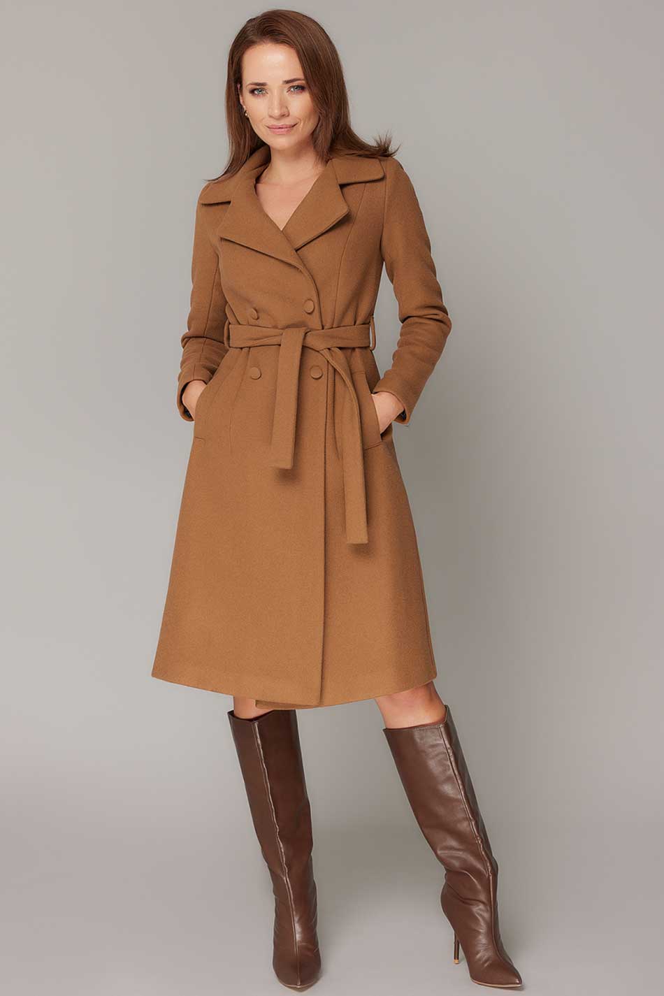 Płaszcz Joan karmel marki Kasia Zapała to esencja elegancji i ponadczasowego stylu w luksusowym wydaniu. Płaszcz ten uszyty został z wysokogatunkowej, włoskiej wełny z dodatkiem kaszmiru i zachwyca miękkością, lekkością i wyjątkowym komfortem noszenia. Szlachetny odcień karmelu dodaje temu okryciu klasy i ciepła, tworząc idealną propozycję na sezon jesienno-zimowy. Płaszcz Joan karmel posiada praktyczne kieszenie, subtelne zapięcie na magnesy oraz pasek, który pozwala regulować talię i modelować sylwetkę. Ozdobne guziczki, oblekane tą samą tkaniną, podkreślają spójność tego projektu i elegancki charakter całości. Wnętrze tego płaszcza wykończone zostało czarną, wiskozową podszewką, zapewniającą komfort jego użytkowania oraz idealne układanie się materiału w ruchu. Płaszcz Joan karmel doskonale zaprezentuje się zarówno w zestawieniu z elegancką sukienką, jak i w codziennym wydaniu, z jeansami czy szerokimi spodniami. ESENCJA KLASY!