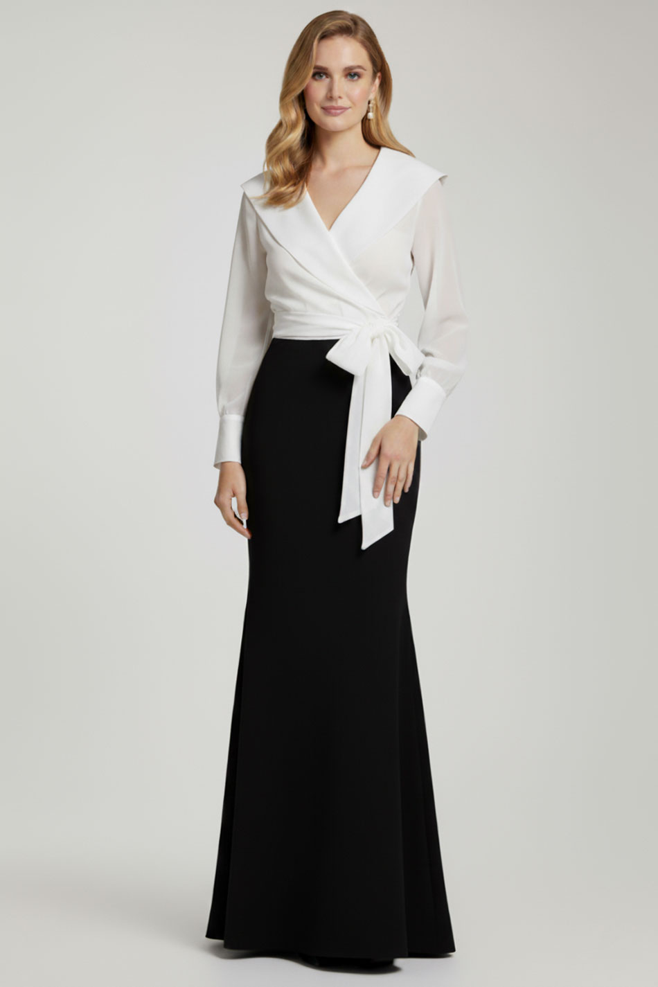 Przepiękna, długa spódnica o fasonie syreny uszyta z grubszej, lekko elastycznej czarnej tkaniny. Spódnica w tali i biodrach dopasowana, poszerzająca się od kolan do ziemi. Tył spódnicy ma lekki tren - przód jest krótszy niż tył. Podwyższony stan, bez paska w talii. Zapinana z tyłu na zamek kryty, na podszewce. Tył spódnicy pięknie się układa. Urocza spódnica, którą stylizować na wiele okazji. Z elegancką bluzką, topem, krótkim żakietem sprawdzi się podczas wszelkich formalnych i wieczorowych spotkań, a z prostym topem, krótką kurtką idealna do codziennych stylizacji. IDEALNA!