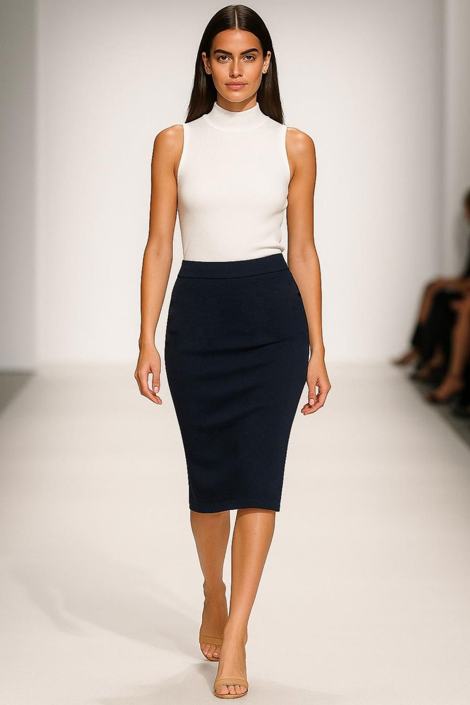 Spódnica ołówkowa midi granatowa to propozycja elegancka i uszyta z dbałością o każdy detal. Wykonana została ona z delikatnie elastycznej, miękkiej i przyjaznej dla skóry tkaniny i zapewnia idealne dopasowanie oraz swobodę ruchów. Ołówkowy krój tej spódnicy subtelnie podkreśli kobiecą sylwetkę, a jej długość midi nada sylwetce smukłości i eleganckich proporcji. Głęboki, granatowy odcień tego modelu może być alternatywą dla klasycznej czerni, bo doskonale sprawdzi się zarówno w stylizacjach biurowych i biznesowych, jak i koktajlowych, a nawet wieczorowych. Model ten zachwyca prostotą i wszechstronnością i świetnie będzie wyglądał w połączeniu z koszulą z jedwabiu, dopasowanym topem czy marynarką o wyrazistej linii. Niezależnie od okazji, spódnica ołówkowa midi granatowa zagwarantuje perfekcyjny wygląd i ponadczasowy szyk. SZLACHETNA KLASA!