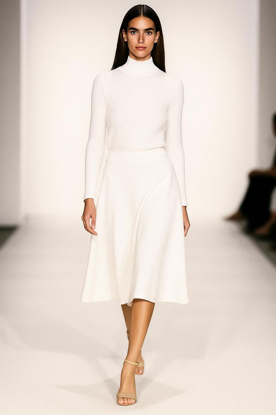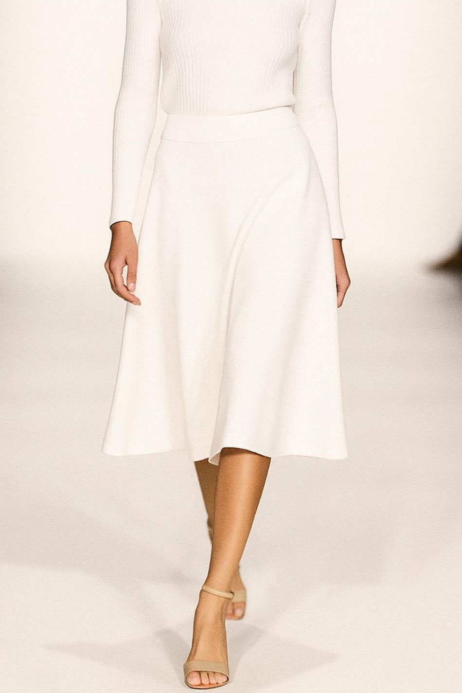 Spódnica trapezowa midi ecru to kwintesencja lekkości i kobiecego stylu w ponadczasowym wydaniu. Wykonana z miękkiej, naturalnej dzianiny, która pięknie pracuje w ruchu, spódnica ta gwarantuje idealne dopasowanie do sylwetki i komfort noszenia. Jej fason, delikatnie rozszerzany ku dołowi, doda figurze subtelnego wdzięku, a szeroki pasek w talii podkreśli kobiece proporcje. Odcień ecru tego modelu nada stylizacjom świeżości i elegancji, dzięki czemu spódnica trapezowa midi ecru świetnie sprawdzi się w stylizacjach na różne okazje i na każdą porę roku. KOBIECOŚĆ I LEKKOŚĆ!