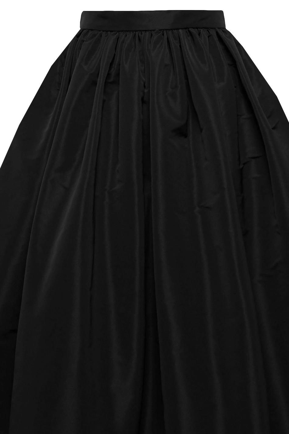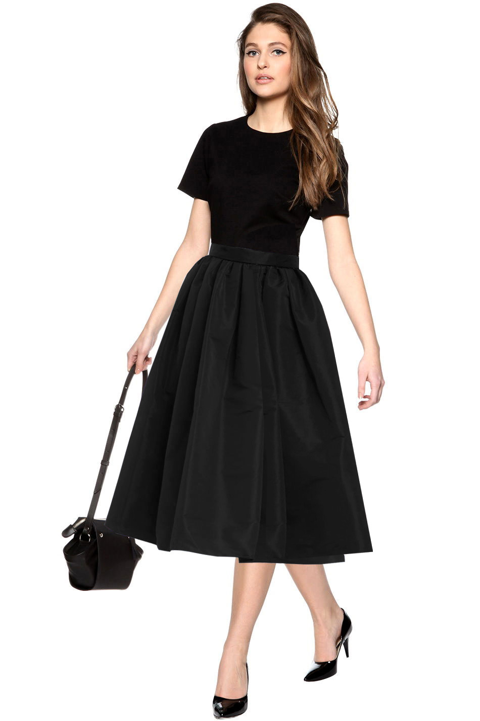 Piękna spódnica uszyta z tafty w kolorze czarnym. Spódnica rozkloszowana, z marszczeniami w talii nadającymi spódnicy objętości. Kieszenie w szwach bocznych. Pas w talii idealnie podkreśla kobiece kształty i wyszczupla. Spódnica zapinana z tyłu na zamek kryty. Do spódnicy doszyta halka z podszewki, którą można założyć pod spódnicę. Tkanina tafta - piękna, mięsista, z delikatnym, satynowym połyskiem. Idealna na wiele okazji, z elegancką bluzką, topem, krótkim żakietem sprawdzi się podczas wszelkich formalnych i wieczorowych spotkań, a z prostym topem, krótką kurtką idealna do codziennych stylizacji. IDEALNA!