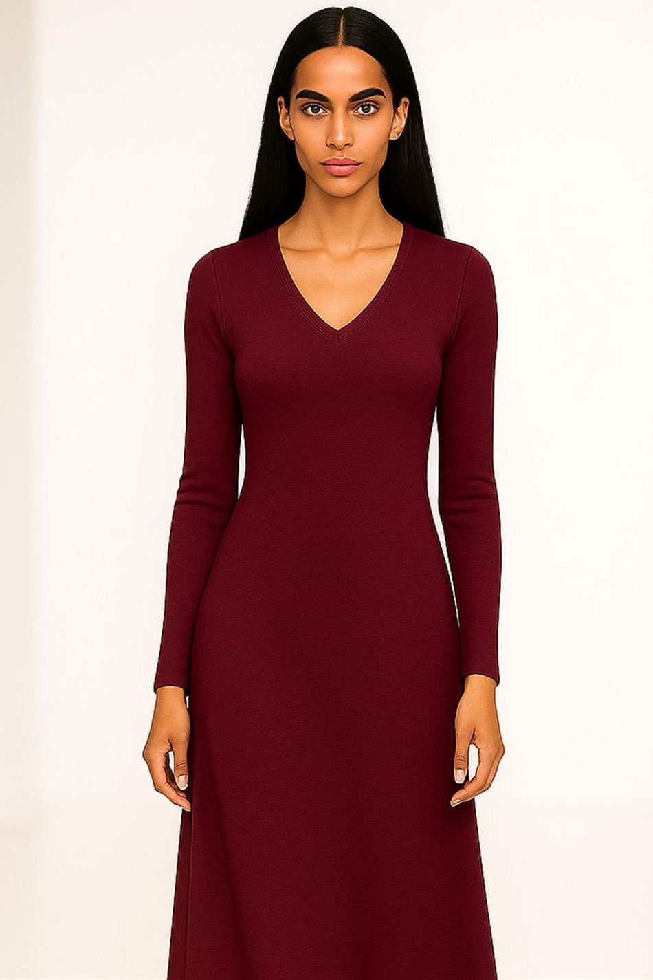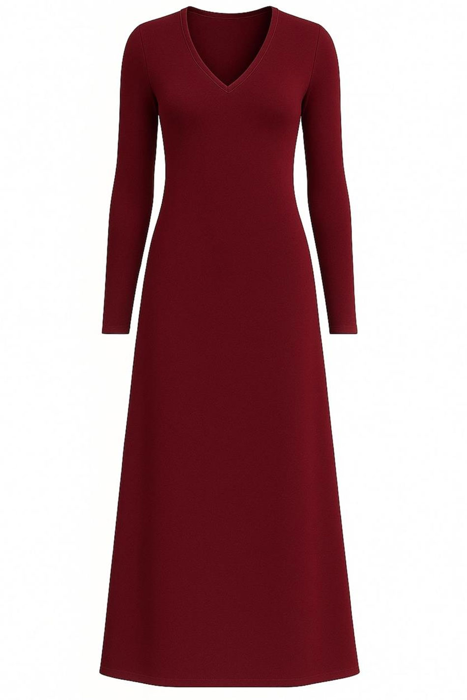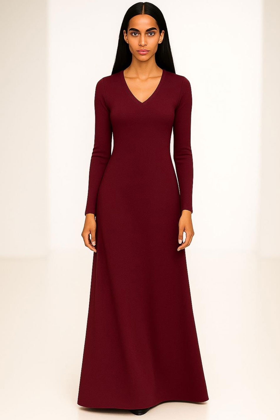 Sukienka długa dekolt serek długi rękaw burgund to propozycja, która łączy głębię koloru z eleganckim krojem. Jej dopasowana linia, z delikatnym rozszerzeniem ku dołowi, doskonale podkreśli sylwetkę, zachowując przy tym pełen komfort ruchu. Dekolt w serek tego modelu subtelnie odsłoni szyję i doda każdej stylizacji kobiecości i delikatnego "pazura". Wykonana z wysokogatunkowej dzianiny o miękkiej strukturze, sukienka długa dekolt serek długi rękaw burgund idealnie ułoży się na ciele i sprawi czystą przyjemność z jej noszenia. Sukienka ta to model, który z pewnością przyciągnie uwagę i sprawi, że każda stylizacja nabierze wyjątkowego charakteru. PRZYJEMNOŚĆ NOSZENIA!