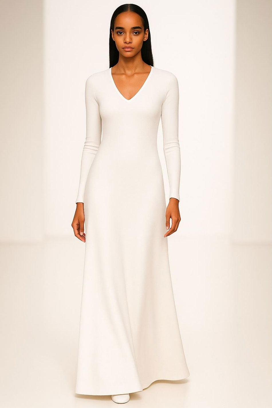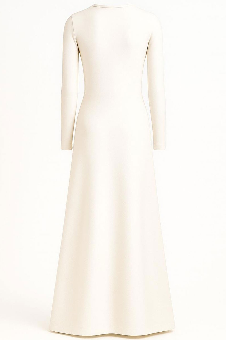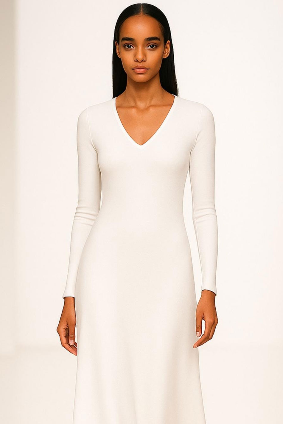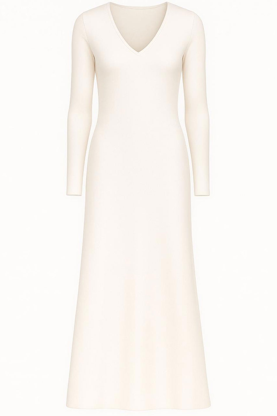 Sukienka długa dekolt serek długi rękaw ecru to propozycja, która emanuje subtelną elegancją i delikatnym urokiem. Wykonana z jakościowej, naturalnej, średniej grubości dzianiny, sukienka ta pięknie dopasuje się do sylwetki, podkreślając jej kobiece linie. Dekolt w serek tego modelu optycznie wysmukli szyję, a długie rękawy i lekkie poszerzenie do dołu nadadzą całości wyważonego charakteru. Kolor ecru, w którym wyrażona została sukienka długa dekolt serek długi rękaw doskonale rozświetli cerę i nada stylizacjom świeżości, czyniąc tą kreację idealną na wyjątkowe okazje oraz codzienne chwile, w których liczy się klasa. CZYSTA ELEGANCJA!