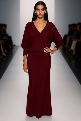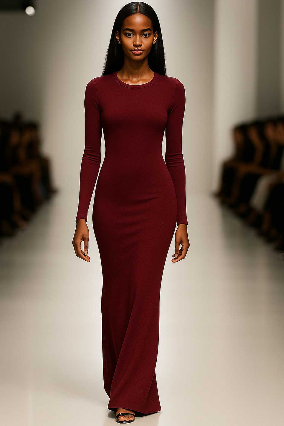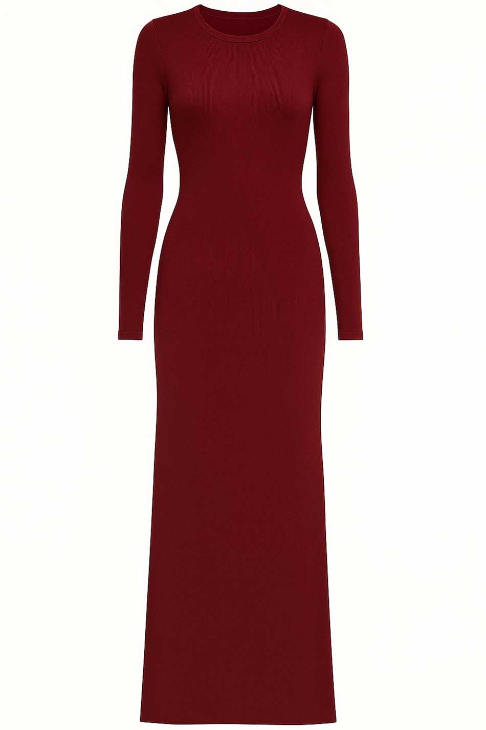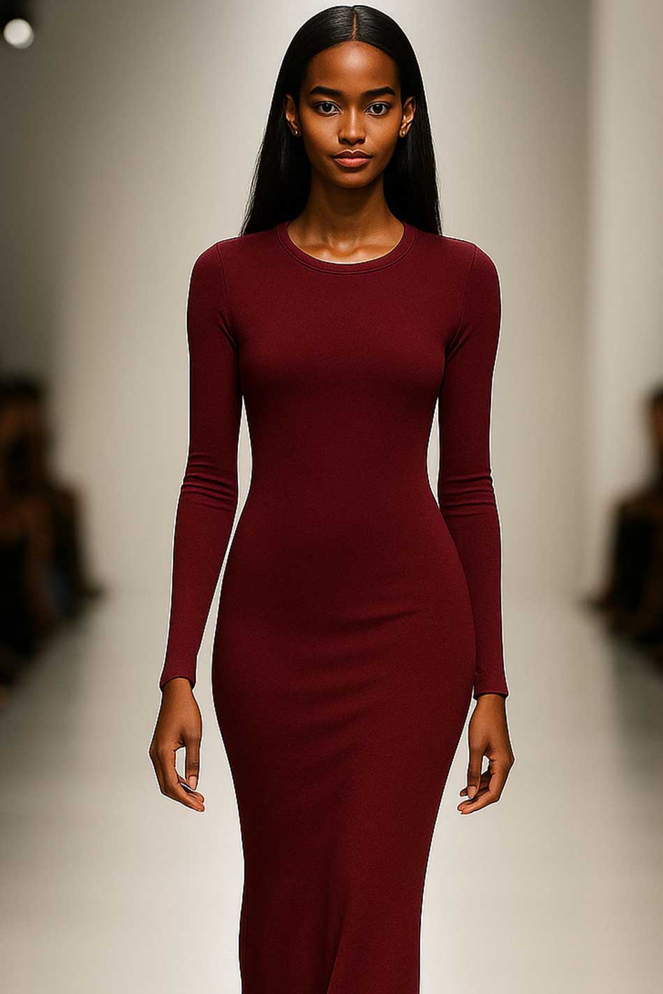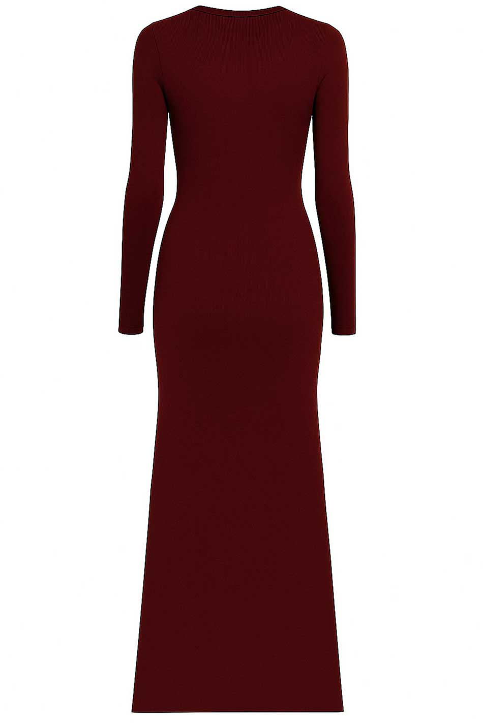 Sukienka długa okrągły dekolt długi rękaw burgund to model, który emanuje głębią koloru i elegancją. Burgundowy odcień tej sukienki doda każdej stylizacji wyrazistości, a jej dopasowany krój pięknie podkreśli sylwetkę, zachowując przy tym pełen komfort noszenia. Wykonana z naturalnej, elastycznej dzianiny o średniej grubości kreacja ta nie tylko nie prześwituje, ale również idealnie dopasuje się do ciała i utrzyma kształt przez długie godziny. Okrągły dekolt i długie rękawy tego modelu tworzą harmonijną kompozycję, a prosty dół nadaje całości eleganckiej prostoty. Sukienka długa okrągły dekolt długi rękaw burgund doskonale łączy zmysłowość i klasę i idealnie sprawdzi się w outfitach na wieczorne wyjścia i wyjątkowe okazje. WYJĄTKOWA!