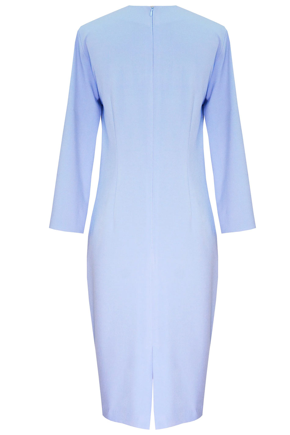 Sukienka Julia w odcieniu delikatnego błękitu to propozycja, która łączy w sobie klasyczną elegancję z nowoczesnymi akcentami. Prosty fason tej sukienki, o długości sięgającej lekko za kolano został zaprojektowany tak, by subtelnie podkreślać kobiecą sylwetkę, nie przytłaczając jej zbędnymi detalami. Gładka powierzchnia materiału w połączeniu z minimalistyczną linią dekoltu tworzy harmonijną całość, która sprawdzi się w wielu okolicznościach – od spotkań biznesowych po uroczystości rodzinne. Model ten został osadzony na elastycznej podszewce, co zwiększa komfort noszenia i pozwala tkaninie lepiej układać się na ciele. Wyjątkowego charakteru dodają sukience Julia ozdobne rękawy – rozcięte na długości, luźno opadające, tworzą efekt subtelnego ruchu i elegancji przy każdym geście. Ten detal wprowadza element oryginalności i sprawia, że sukienka ta stanie się czymś więcej niż tylko klasyczną kreacją koktajlową. Błękitny kolor sukienki Julia, będący synonimem świeżości i klasy, będzie doskonale współgrał zarówno z delikatnymi dodatkami w tonacjach nude, jak i bardziej wyrazistymi akcentami w srebrze, złocie czy innych wyraźnych odcieniach. Sukienka Julia to najlepszy wybór dla kobiet ceniących ponadczasowe formy, ale poszukujących w modzie również subtelnych, przyciągających uwagę rozwiązań. PEŁNIA SUBTELNOŚCI!