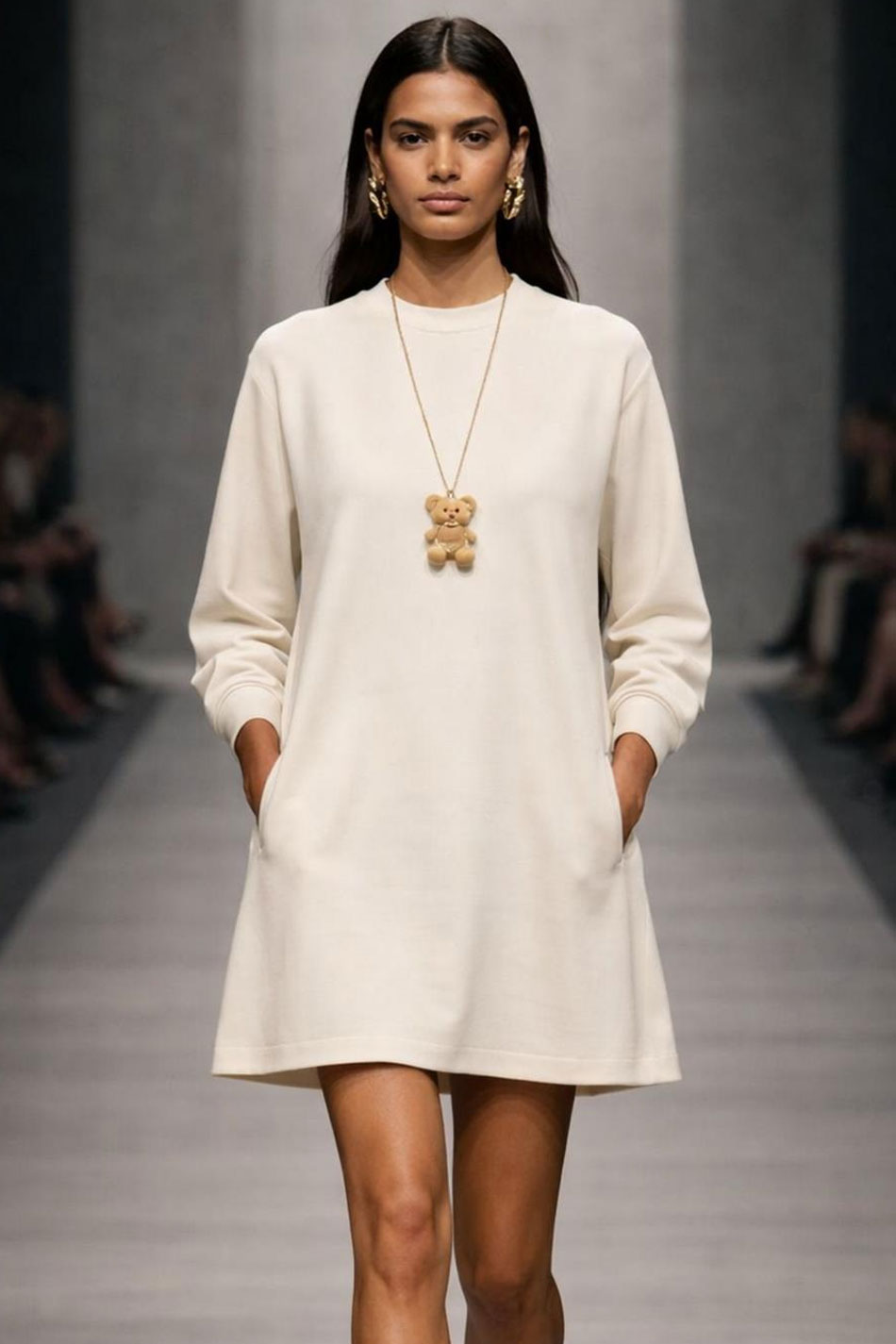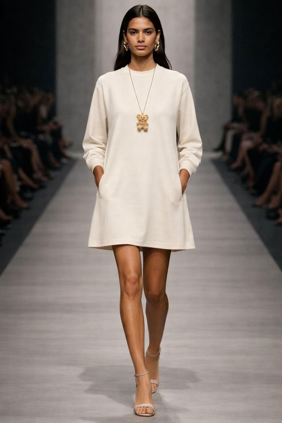 Sukienka linia A okrągły dekolt długi rękaw ecru to subtelna i kobieca propozycja, która zachwyca jasną, elegancką kolorystyką i prostą, harmonijną formą. Odcień ecru tej kreacji dodaje jej lekkości i świeżości, doskonale wpisując się w ponadczasowy, minimalistyczny styl. Model ten, o fasonie w linii A, będzie miękko opływał sylwetkę, zapewniając swobodę ruchów i wygodę noszenia nawet przez cały dzień. Delikatnie rozszerzany dół tej sukienki tworzy lekką, niewymuszoną formę, która prezentuje się bardzo naturalnie i kobieco. Klasyczny, okrągły dekolt oraz długie rękawy nadają całości spójnego, eleganckiego charakteru, a kieszenie podnoszą komfort użytkowania. Model ten wykonany został z wysokiej jakości, przyjemnej w dotyku tkaniny, która jest przewiewna i przyjazna dla skóry. Długość mini dodaje temu modelowi lekkości i nowoczesności, dzięki czemu sukienka linia A okrągły dekolt długi rękaw ecru będzie idealnym wyborem zarówno na co dzień, jak i na bardziej wyjątkowe okazje. SUBTELNA!