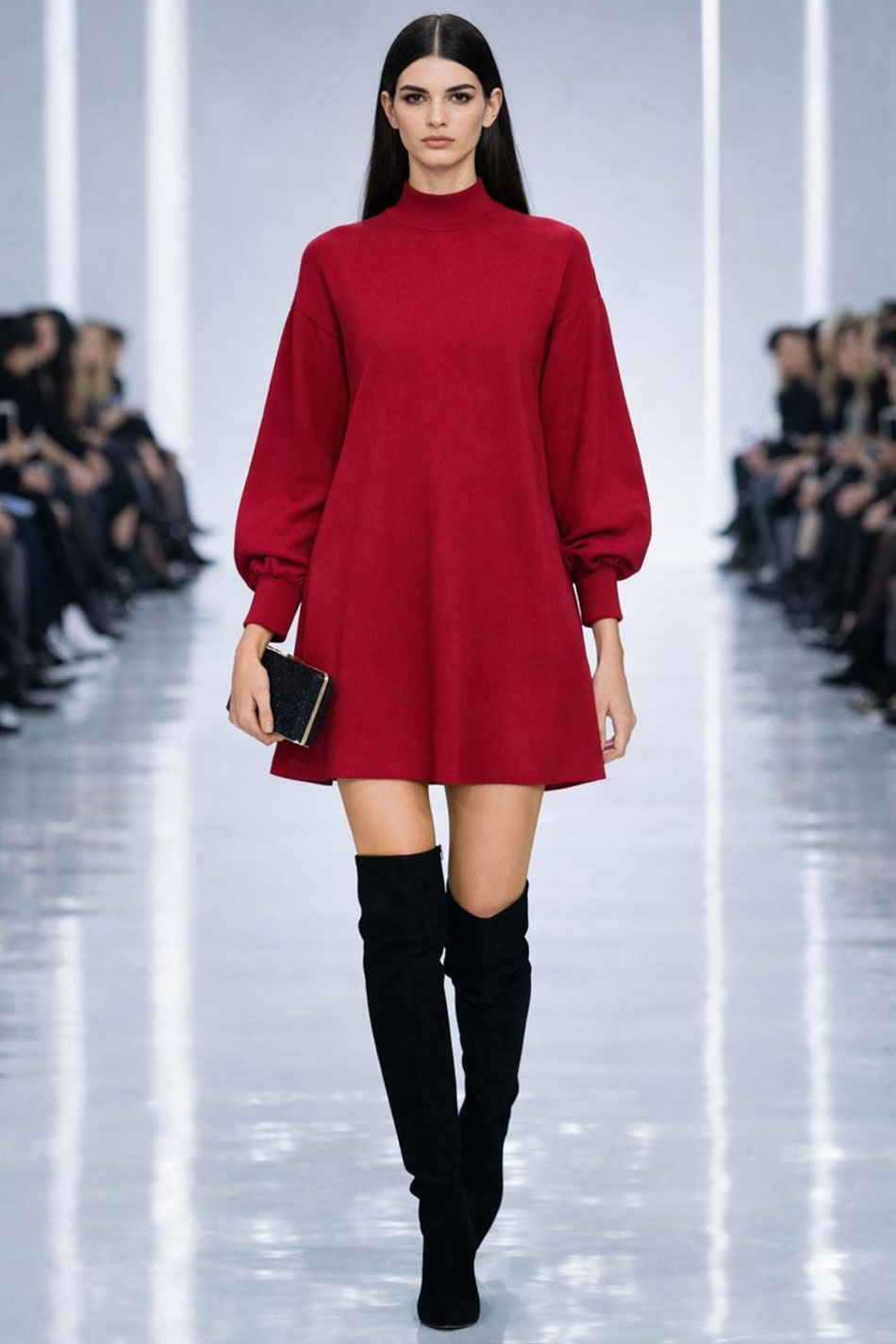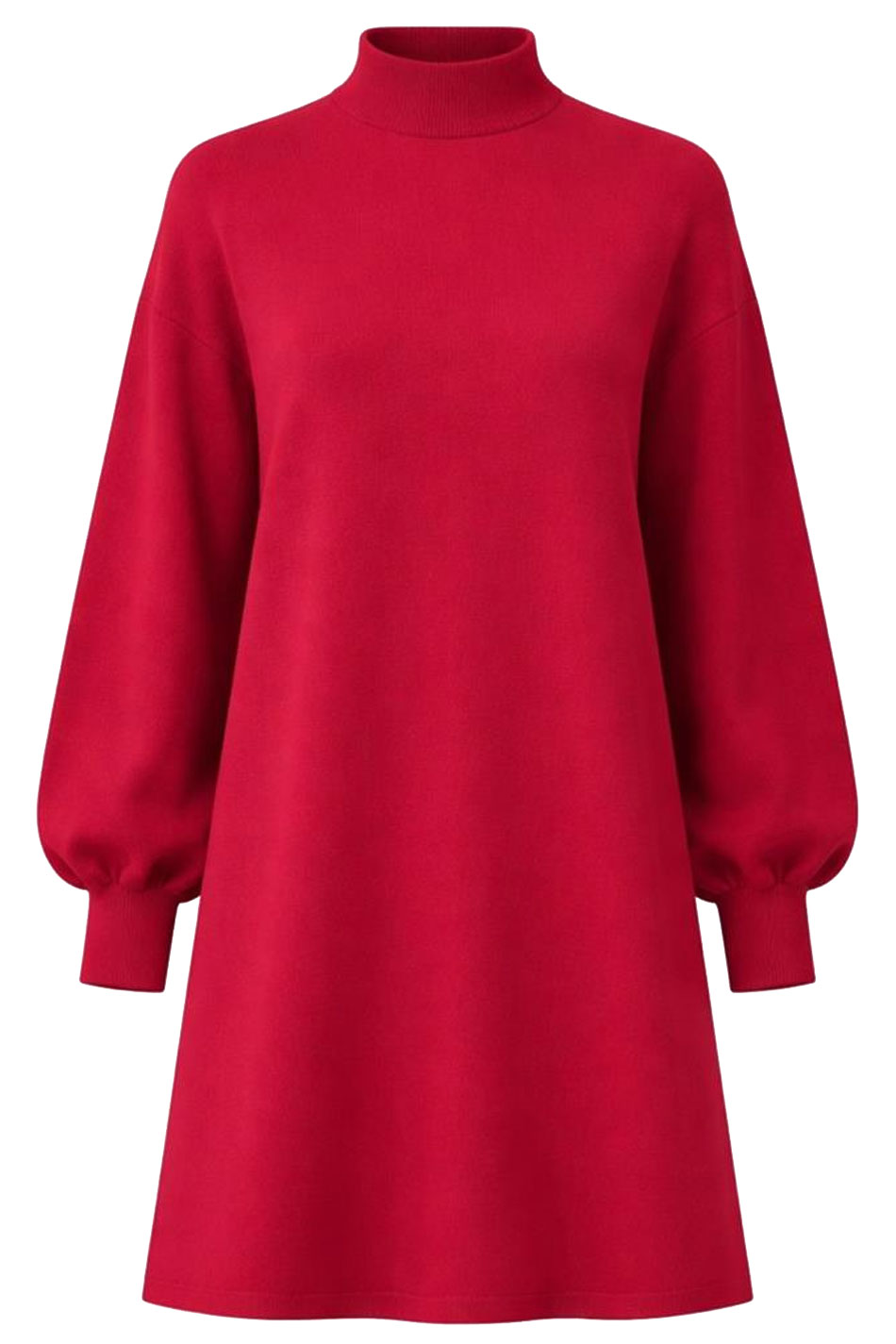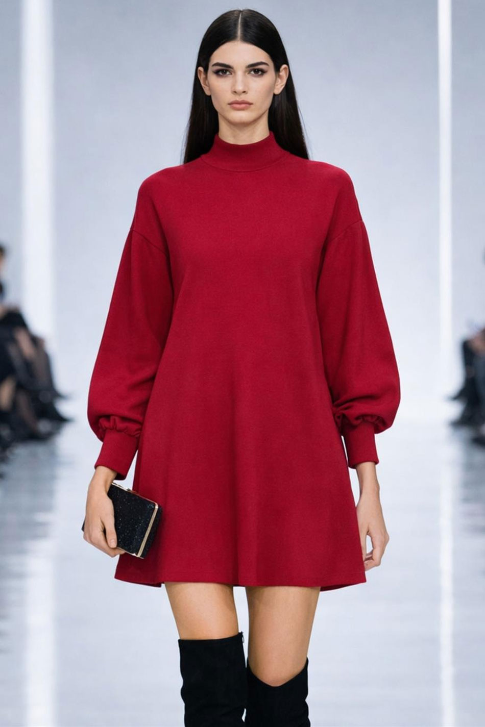 Sukienka linia A półgolf długi rękaw czerwona to esencja prostoty i minimalizmu, idealna dla kobiet ceniących sobie elegancję w codziennym wydaniu. Charakteryzuje się ona modnym krojem litery A, który subtelnie zamaskuje ewentualne niedoskonałości sylwetki, jednocześnie podkreślając jej atuty. Sukienka ta posiada dekolt typu półgolf, dodający jej szyku, oraz długie, zakończone delikatnym, bufiastym akcentem, rękawy co nadaje całości lekkości. Kreacja ta została precyzyjnie odszyta z myślą o najwyższym komforcie noszenia i powstała z tkaniny, która jest niezwykle przyjemna dla ciała i przewiewna, co sprawia, że świetnie sprawdzi się ona w wielu stylizacjach, na różne okazje i to niezależnie od pory roku. Intensywny, czerwony kolor, w którym wyrażony został ten model doda każdemu outfitowi charakteru. Sukienka linia A półgolf długi rękaw czerwona będzie idealnym elementem garderoby kapsułowej, tym bardziej, że w zależności od dodatków można nadać jej bardziej formalny lub casualowy charakter. ELEGANCJA W CODZIENNYM WYDANIU!