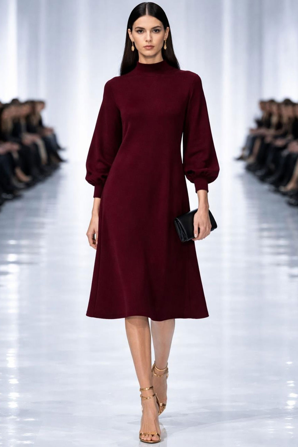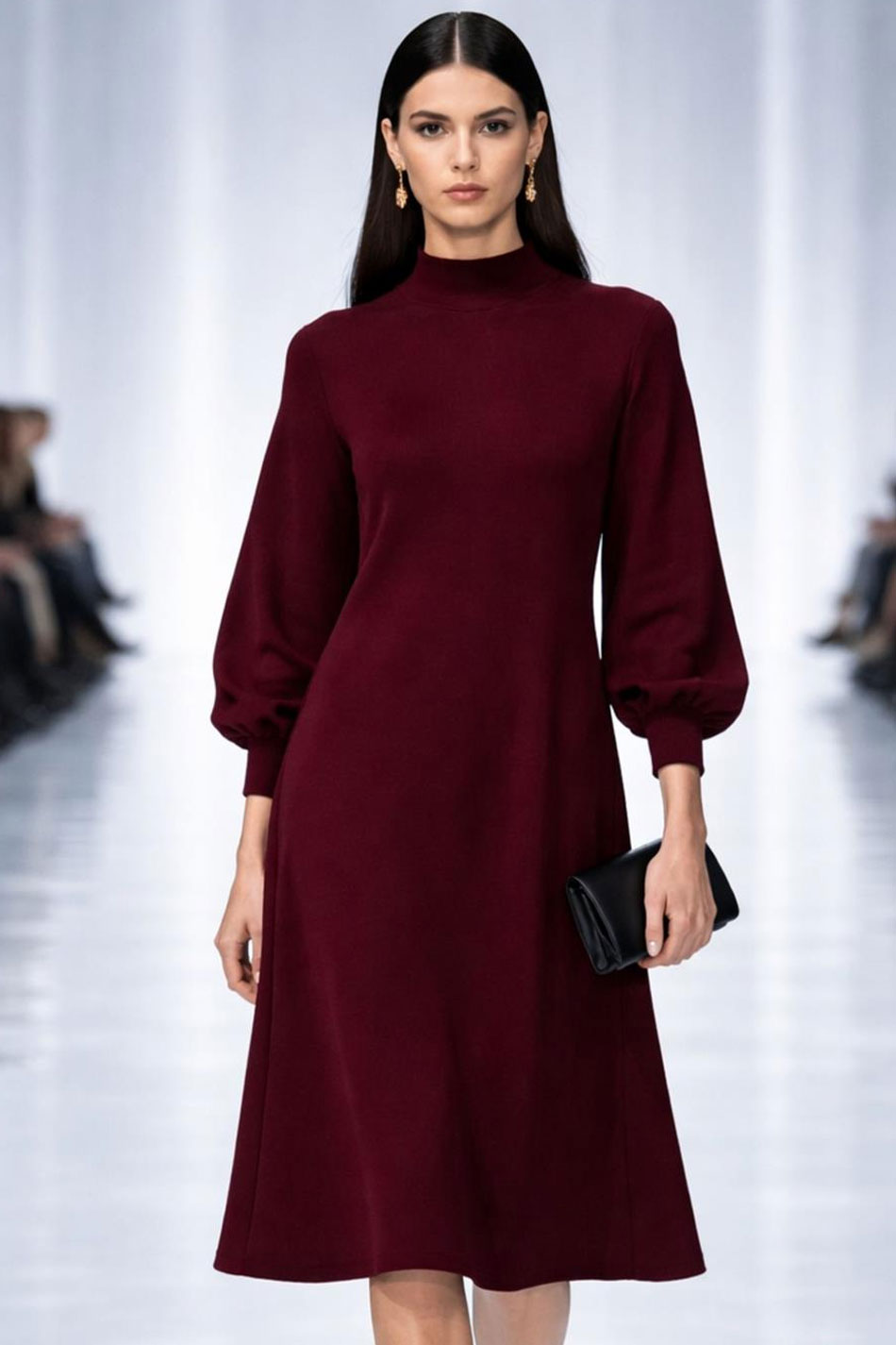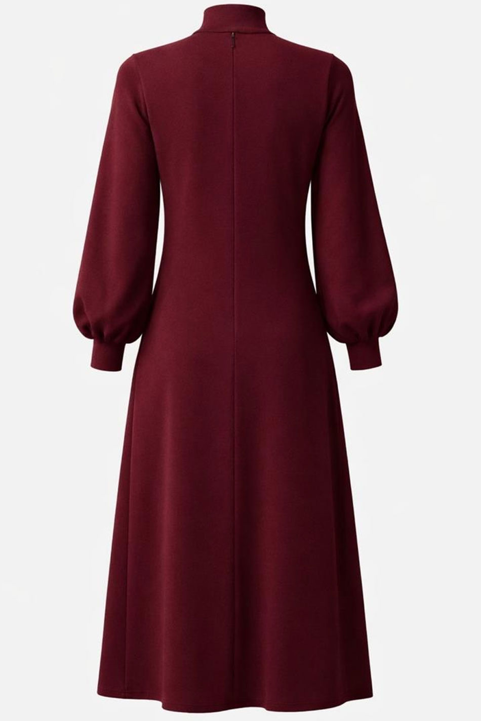 Sukienka midi dekolt półgolf długi bufiasty rękaw burgund to propozycja o eleganckim i kobiecym charakterze. Głęboki odcień burgundu, w którym wyrażona została ta sukienka, doda każdej stylizacji szlachetności i gwarancji, że doskonale zaprezentuje się ona zarówno w ciągu dnia, jak i podczas bardziej wyjątkowych okazji. Sukienka midi dekolt półgolf długi bufiasty rękaw burgund została zaprojektowana w długości midi, która podkreśla jej klasyczny charakter i zapewnia uniwersalność. Swobodny krój tej kreacji będzie delikatnie opływał sylwetkę, gwarantując komfort noszenia, a półgolf w subtelny sposób zaakcentuje linię szyi, dodając całości elegancji. Wyjątkowym elementem tego modelu są długie, bufiaste rękawy zakończone mankietami, które nadają temu projektowi lekkości i modowego wyrazu. Sukienka ta wykonana została z przyjemnej w dotyku, wysokiej jakości tkaniny, która zapewni wygodę przez cały dzień i doskonale ułoży się na ciele. Staranność wykonania sprawia, że model ten na długo zachowa swój kształt i estetyczny wygląd. Sukienka midi dekolt półgolf długi bufiasty rękaw burgund będzie idealnym wyborem na spotkania, wyjścia czy eleganckie okazje. NIESZABLONOWA!