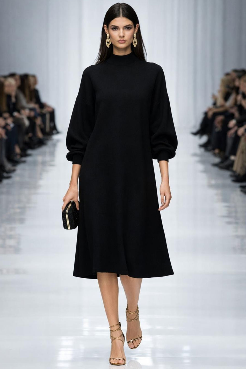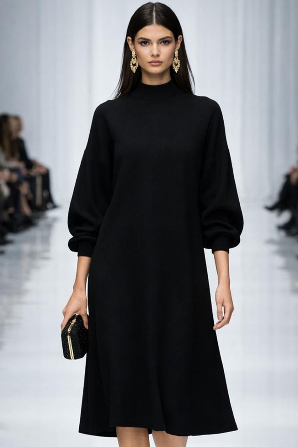 Sukienka midi dekolt półgolf długi bufiasty rękaw czarna łączy w sobie ponadczasową elegancję z nowoczesnymi akcentami i będzie doskonałym fundamentem kobiecej garderoby. Jej prosta i minimalistyczna forma zestawiona została z klasycznym krojem w literę A, który będzie subtelnie opływał sylwetkę, zapewniając pełną swobodę ruchów oraz wysoki komfort noszenia. Sukienkę tą wyróżnia dekolt typu półgolf, nadający całości szlachetnego charakteru, oraz długie, efektownie bufiaste rękawy zakończone mankietami, które wprowadzą do każdej stylizacji nutę finezji. Model ten został precyzyjnie odszyty z wysokiej jakości tkaniny, która jest niezwykle przyjemna dla ciała i przewiewna, co pozwoli skórze oddychać przez cały dzień. Dzięki swojej uniwersalności sukienka midi dekolt półgolf długi bufiasty rękaw czarna idealnie sprawdzi się podczas wielu okazji – od formalnych spotkań biznesowych i pracy w biurze, przez rodzinne uroczystości, aż po wieczorne wyjścia do teatru czy na kolację. FINEZYJNA!