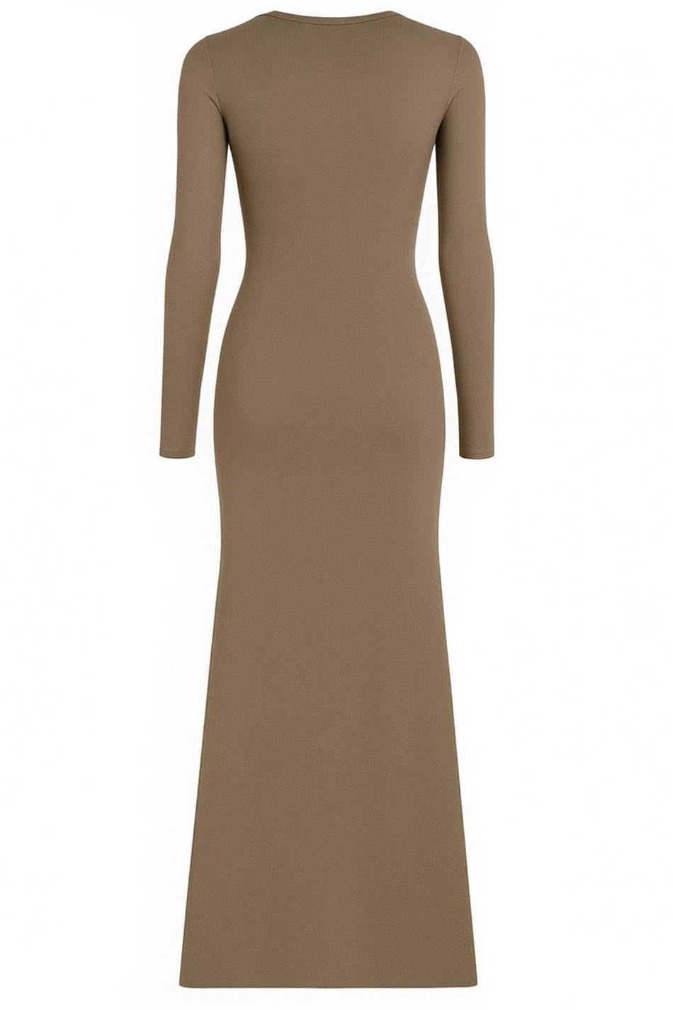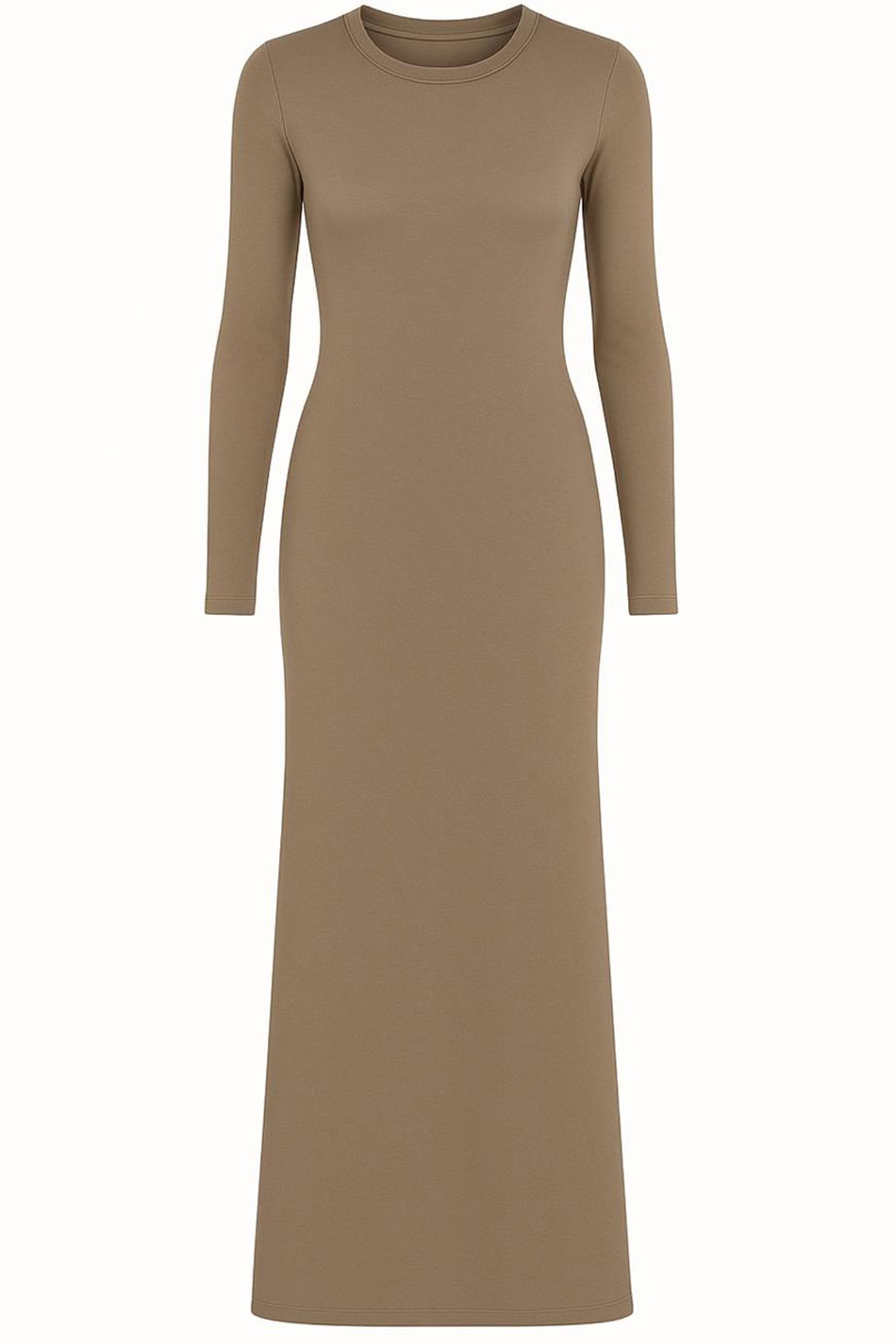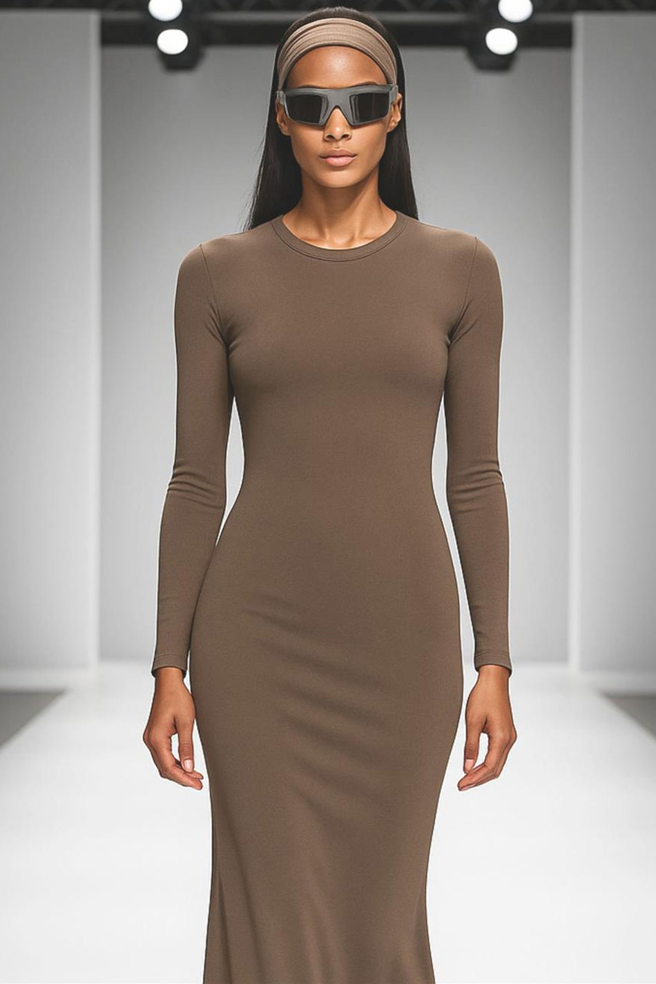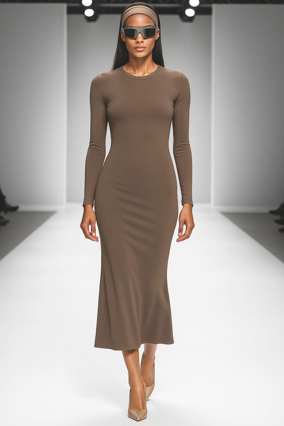 Sukienka midi okrągły dekolt długi rękaw cappuccino to wyjątkowa propozycja dla miłośniczek subtelnej elegancji i komfortu. Jej dopasowana góra pięknie podkreśli sylwetkę, a delikatnie rozszerzany dół doda jej lekkości i harmonii. Okrągły dekolt oraz długie rękawy sprawiają, że model ten prezentuje się klasycznie, ale z nowoczesnym akcentem. Wykonana z elastycznej, naturalnej dzianiny o średniej grubości, kreacja ta zapewni wygodę nawet przez cały dzień, nie tracąc przy tym formy. Odcień cappuccino tej sukienki wprowadzi do każdej stylizacji ciepło i szlachetność i doskonale skomponuje się z różnymi dodatkami. Sukienka midi okrągły dekolt długi rękaw cappuccino to kreacja, która sprawdzi się zarówno podczas mniej, jak i bardziej eleganckich okazji. DOSKONAŁY WYBÓR NA KAŻDĄ OKAZJĘ!