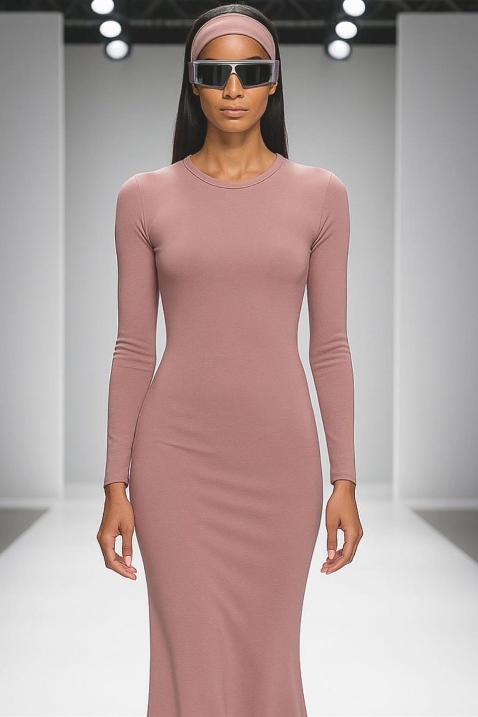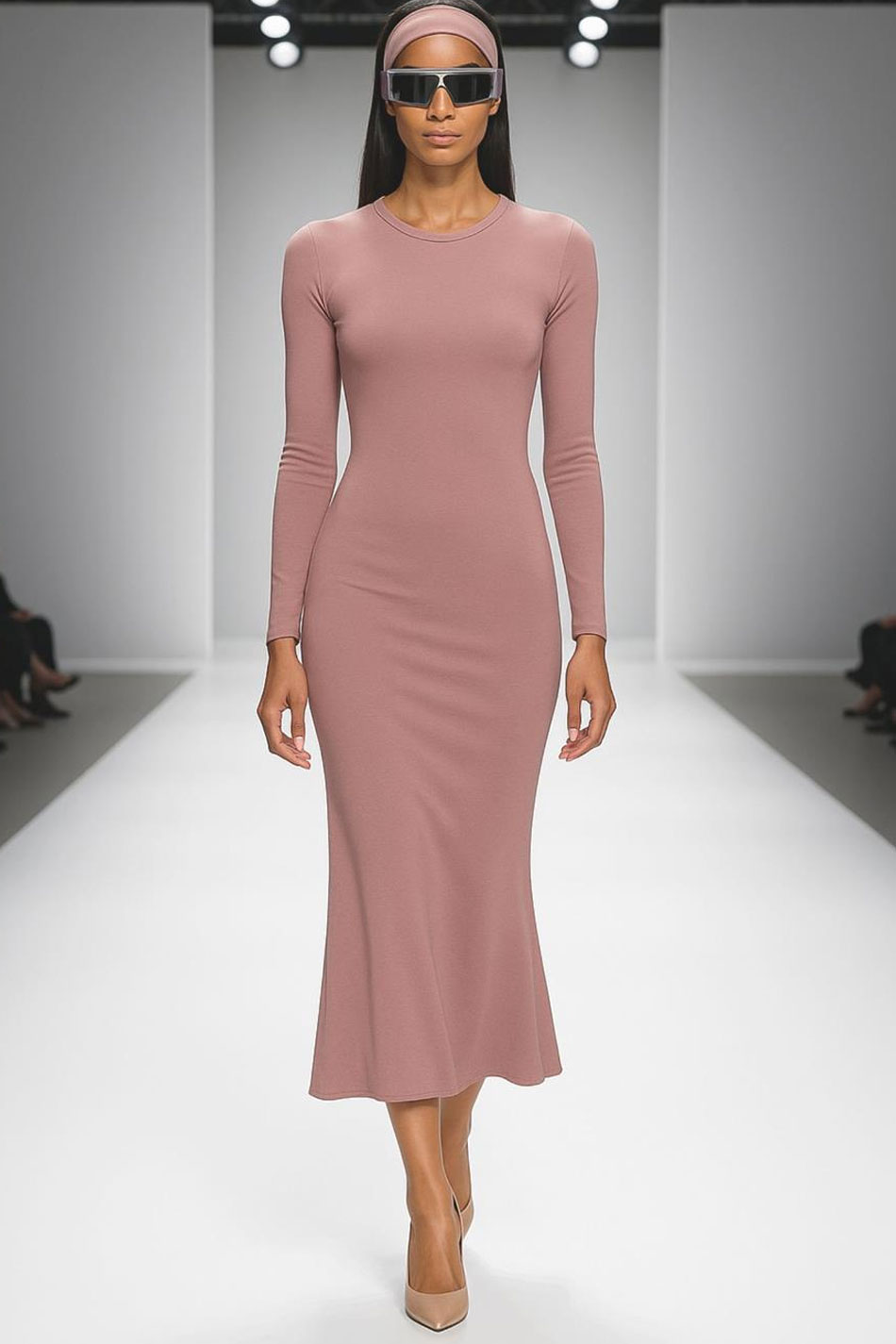 Sukienka midi okrągły dekolt długi rękaw pudrowy róż to delikatna i romantyczna propozycja, która w subtelny sposób podkreśli kobiecość. Miękka, elastyczna dzianina, z której powstał ten model, otuli ciało, zapewniając przy tym pełen komfort noszenia. Dopasowana góra tej sukienki doskonale podkreśli wszystkie zalety sylwetki, a lekko rozkloszowany dół doda zwiewności i gracji każdej stylizacji. Pastelowy odcień różu w którym została wyrażona ta sukienka, pięknie rozświetli cerę i wprowadzi do stylizacji świeżość i lekkość. Długość midi oraz klasyczny krój sprawiają, że model ten doskonale sprawdzi się zarówno na co dzień, jak i w eleganckich zestawieniach z płaszczem lub żakietem. PODKREŚL SWOJĄ KOBIECOŚĆ!