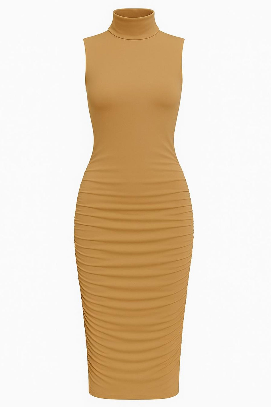 Sukienka ołówkowa długa dekolt golf beżowa to uniwersalny model, który łączy subtelność z wyrafinowaniem. Ołówkowy fason tej kreacji harmonijnie dopasuje się do sylwetki i podkreśli kobiece kształty, a golf, o miękkiej linii, doda całości eleganckiej prostoty. Wykonana z wysokogatunkowej dzianiny o elastycznej strukturze, sukienka ta jest przyjemna w dotyku i idealnie dopasuje się do ruchów ciała. Beżowy kolor wprowadzi do stylizacji lekkość i ponadczasową klasę i zdecydowanie będzie idealnym wyborem zarówno do pracy, jak i na wieczorne wyjścia. Sukienka ołówkowa długa dekolt golf beżowa to absolutne must have w garderobie każdej, nowoczesnej kobiety. WYJĄTKOWA KLASA KAŻDEGO DNIA!