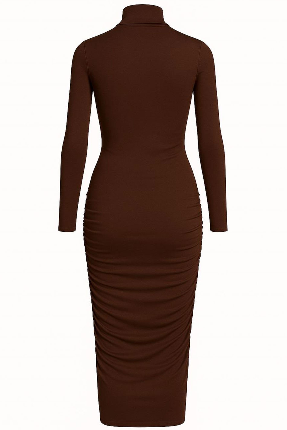 Sukienka ołówkowa długa dekolt golf długi rękaw brązowa to kolejna, doskonała propozycja marki Yuliya Babich. Kreacja ta powstała z troską o każdy detal i z najwyższej jakości, polskiej dzianiny. Jej dopasowany fason perfekcyjnie wymodeluje sylwetkę, a elastyczna, przyjemna w dotyku dzianina zagwarantuje pełen komfort i elegancję. Golf tej sukienki doda każdej stylizacji charakteru, a jej długie rękawy wprowadzą równowagę i lekkość. Sukienka ołówkowa długa dekolt golf długi rękaw brązowa z powodzeniem sprawdzi się zarówno w zestawieniu z klasycznym płaszczem, jak i w minimalistycznych, casualowych stylizacjach. PERFEKCYJNA!