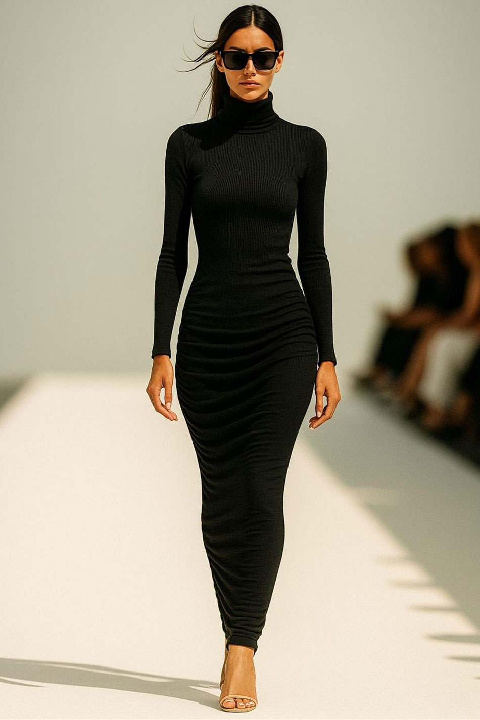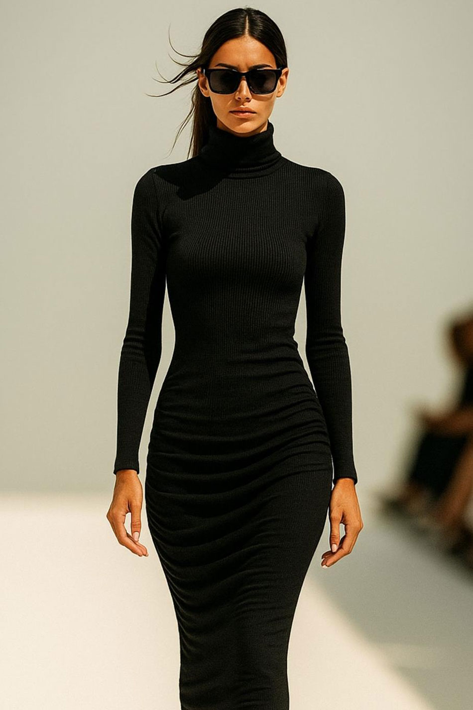 Sukienka ołówkowa długa dekolt golf długi rękaw czarna to esencja nowoczesnej klasyki. Jej smukły, dopasowany krój idealnie podkreśli figurę, gwarantując przy tym pełen komfort i swobodę. Jakościowa, cienka, ale kryjąca dzianina, z której został wykonany ten model, otuli ciało niczym druga skóra, a golf doda każdej stylizacji eleganckiego minimalizmu. Długie rękawy sukienki ołówkowej długiej dekolt golf długi rękaw czarnej i jej długość tworzą "zgrany duet", który świetnie sprawdzi się zarówno podczas spotkań koktajlowych, wieczornych, jak i w stylizacjach codziennych. NOWOCZESNA KLASYKA!