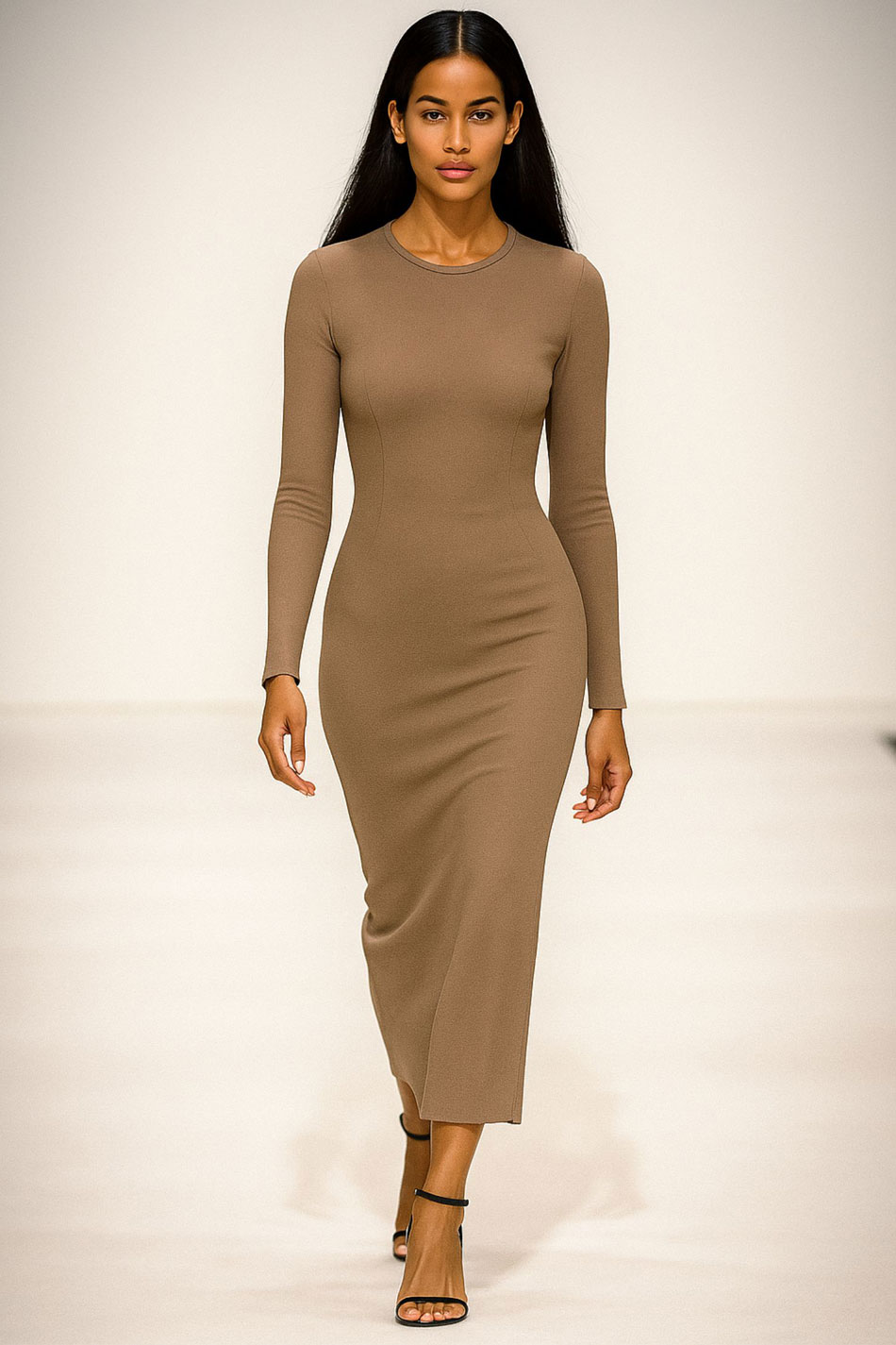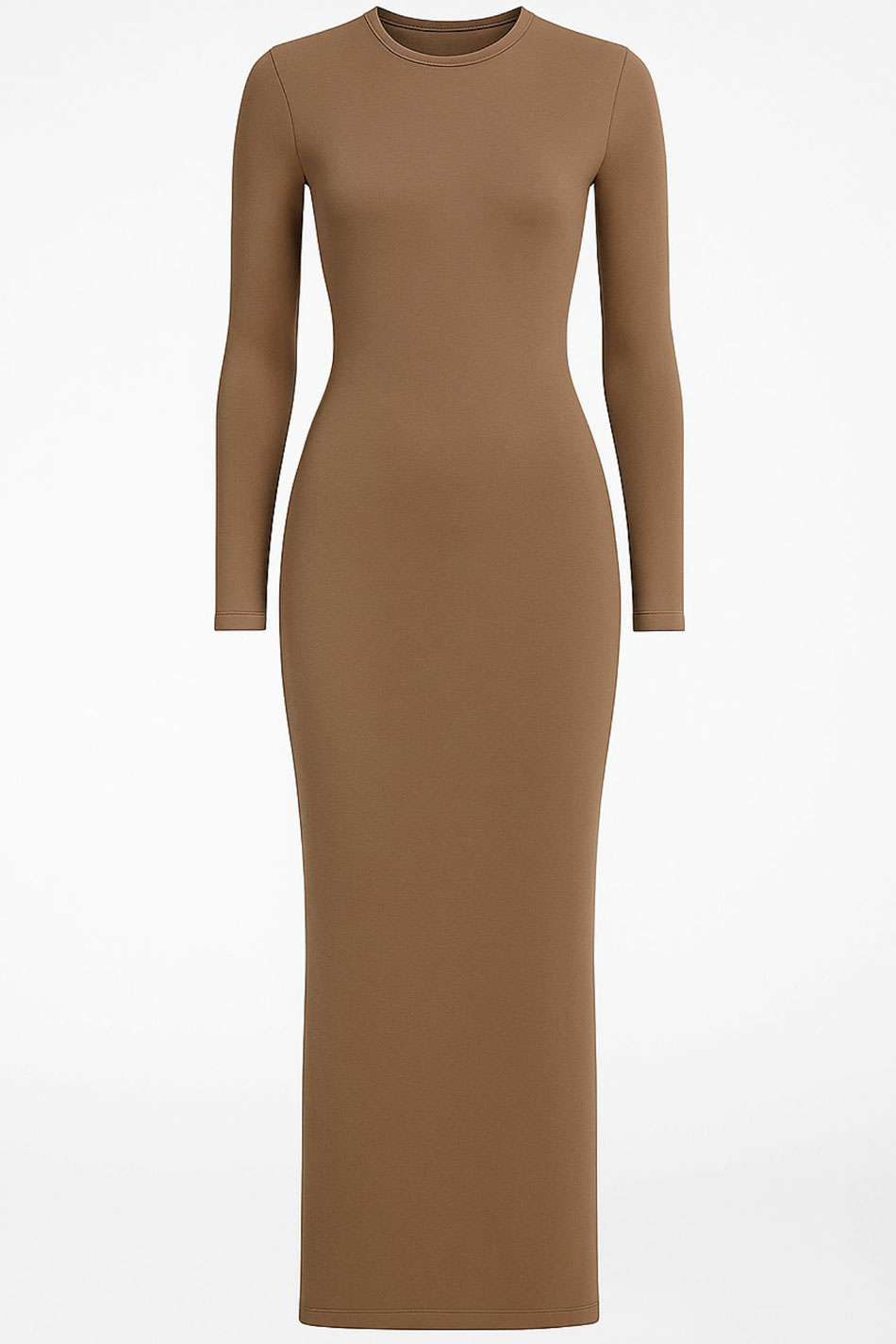 Sukienka ołówkowa długa okrągły dekolt długi rękaw cappuccino łączy elegancję z naturalnym wdziękiem. Jej ciepły, kawowy odcień pozwala podkreślić subtelną kobiecość, a starannie dopasowany fason sprawia, że sylwetka będzie wyglądała harmonijnie i zgrabnie. Dzianina o naturalnym składzie, z której uszyty został ten model, idealnie dopasowuje się do ciała, zapewniając komfort i swobodę ruchów. Długie rękawy oraz okrągły dekolt tej sukienki tworzą zrównoważoną całość, a prosty dół nadaje całości klasycznego wykończenia. Sukienka ołówkowa długa okrągły dekolt długi rękaw cappuccino to model, który doskonale sprawdzi się zarówno w eleganckich, jak i codziennych stylizacjach, oferując uniwersalność i wygodę. NATURALNY WDZIĘK!