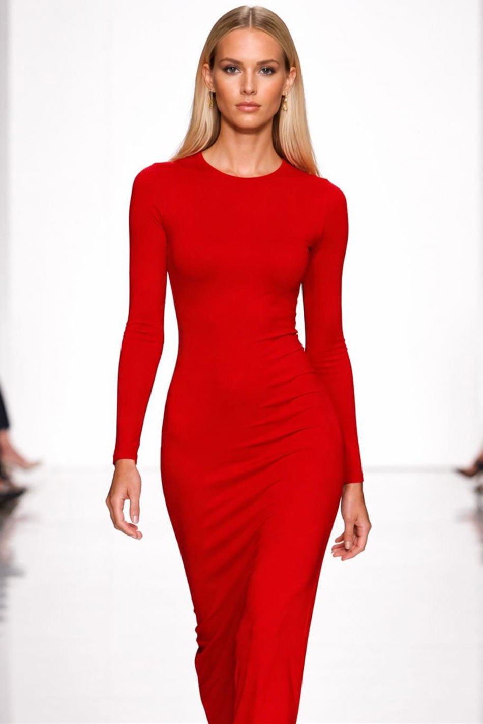 Sukienka ołówkowa długa okrągły dekolt długi rękaw czerwona jasna marki Yuliya Babich to wyrazista i kobieca kreacja, która łączy minimalistyczną formę z intensywną kolorystyką. Jasny, czerwony odcień tej sukienki doda każdej stylizacji energii i świeżości, przyciągając uwagę i podkreślając indywidualny charakter. Długa, dopasowana linia tej kreacji pięknie wymodeluje sylwetkę, eksponując jej naturalne proporcje i optycznie ją wysmuklając. Ołówkowy fason tej sukienki, z prostym dołem, tworzy elegancki, spójny efekt, który sprawdzi się zarówno w bardziej formalnych, jak i wieczorowych stylizacjach. Klasyczny, okrągły dekolt oraz długie rękawy nadają całości ponadczasowego charakteru i równoważą wyrazisty kolor. Model ten wykonany został z wysokiej jakości dzianiny, która jest miękka, elastyczna i przyjemna dla skóry. Materiał ten dopasowuje się do ciała, zapewniając wygodę oraz swobodę ruchów przez cały dzień. Sukienka ołówkowa długa okrągły dekolt długi rękaw czerwona jasna to doskonały wybór na eleganckie spotkania, kolacje czy wyjątkowe okazje, kiedy liczy się styl, komfort i nienaganna forma. WYJĄTKOWA!