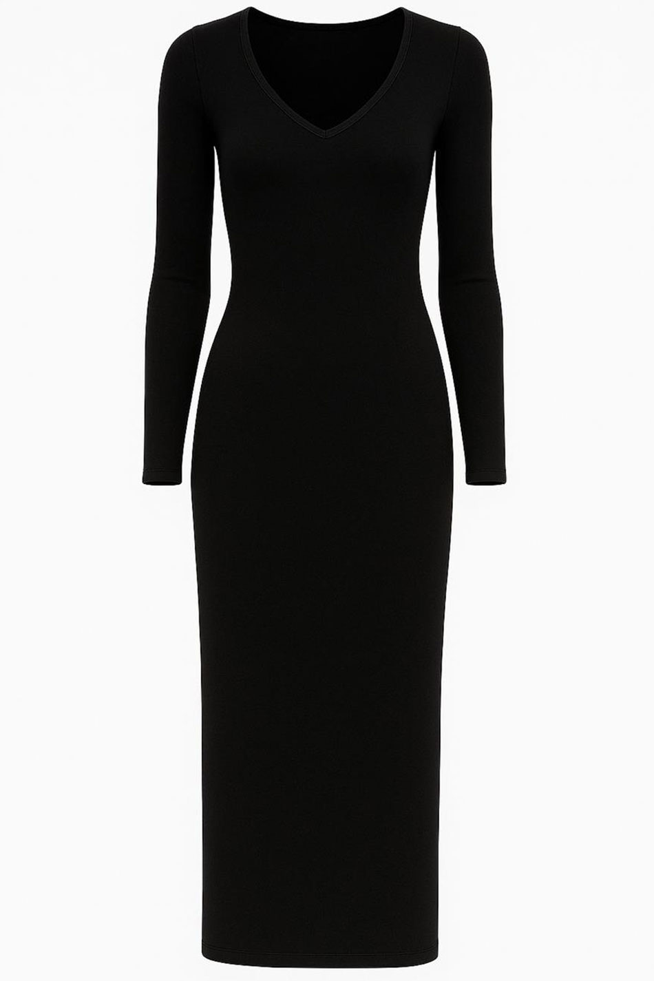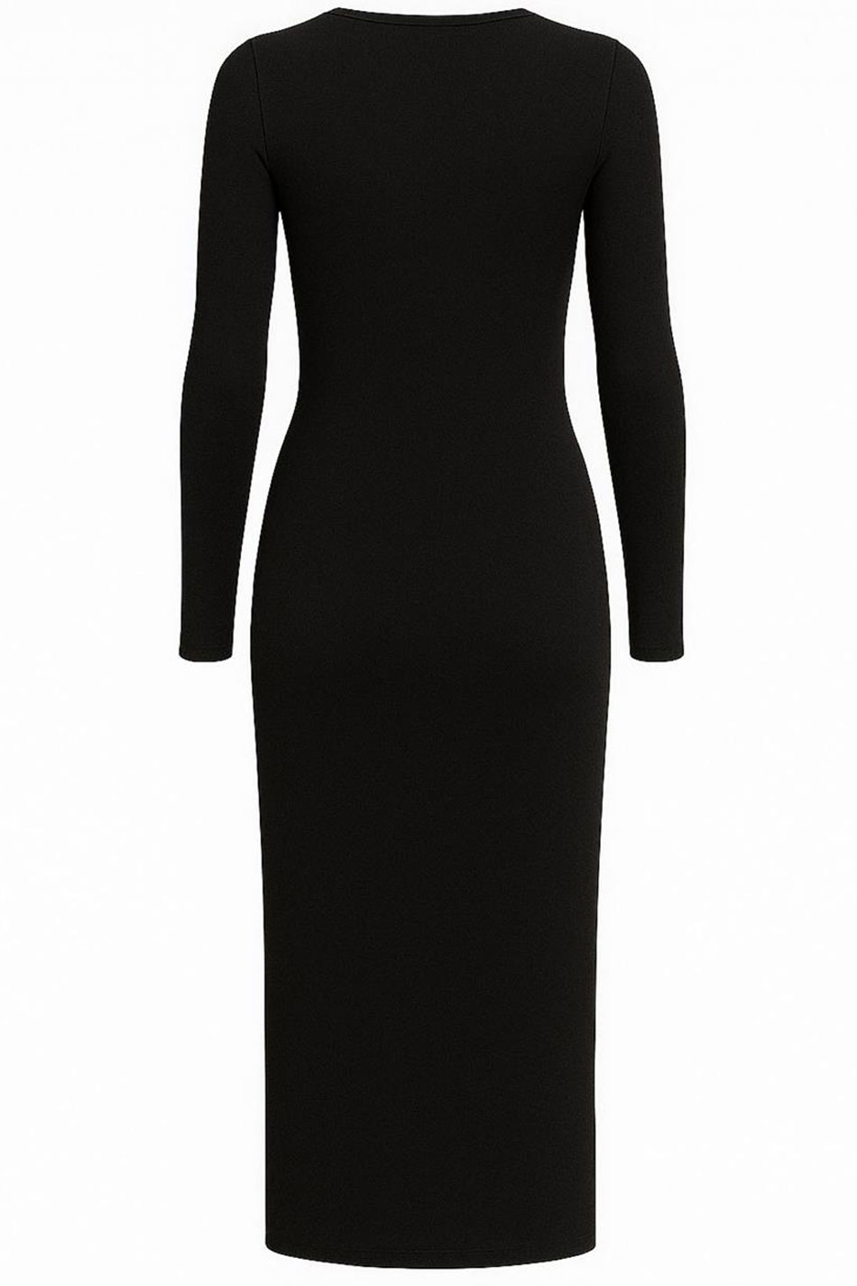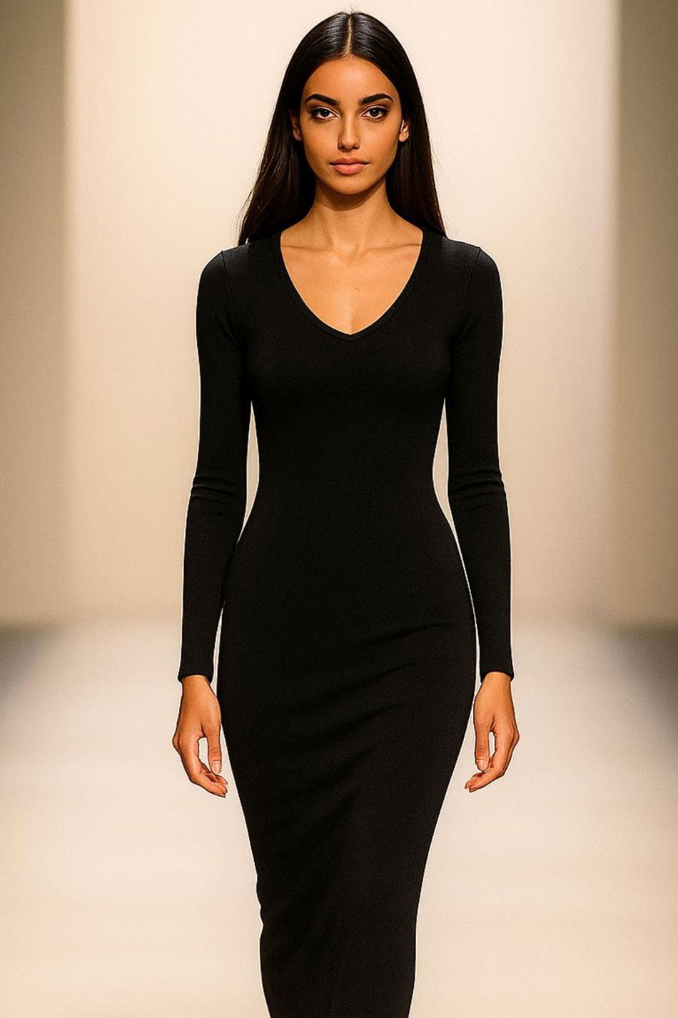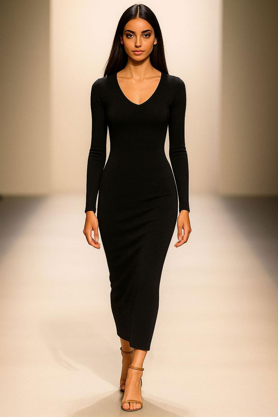 Sukienka ołówkowa midi dekolt serek czarna to kwintesencja ponadczasowej elegancji. Jej dopasowany krój zmysłowo podkreśli kobiecą sylwetkę, a dekolt w serek wysmukli szyję i doda subtelnego uroku. Wykonana z wysokiej jakości, naturalnej dzianiny kreacja ta zapewnia komfort noszenia i idealne dopasowanie nawet przez cały dzień. Czarny kolor nadaje tej sukience klasy i uniwersalności, czyniąc z niej doskonałą bazę do tworzenia stylizacji na różne okazje — od spotkań biznesowych po wieczorne wyjścia. Sukienka ołówkowa midi dekolt serek czarna to model, który łączy prostotę z luksusem w najbardziej wyrafinowany sposób. POŁACZENIE PROSTOTY I LUKSUSU!