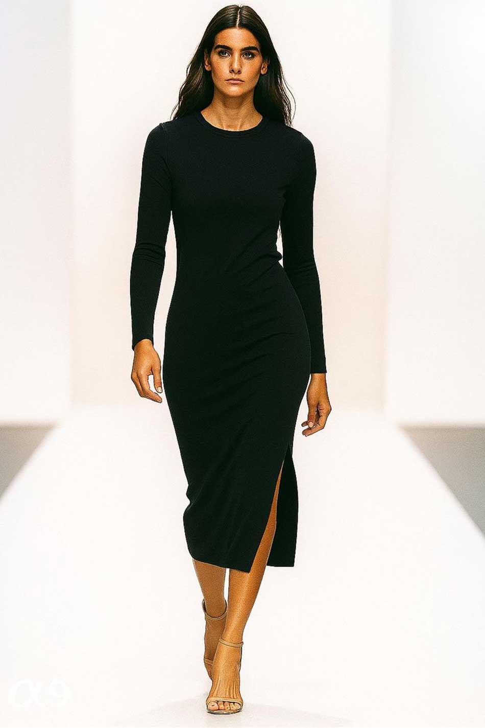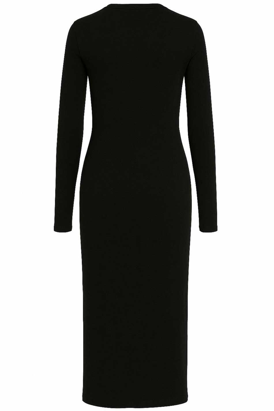 Sukienka ołówkowa midi okrągły dekolt długi rękaw rozcięcie czarna to definicja ponadczasowego minimalizmu. Jej okrągły dekolt i długie rękawy nadadzą każdemu outfitowi wyważonego, klasycznego wyglądu, czyniąc tę sukienkę doskonałą na mniej lub bardziej formalne spotkania czy też wieczorne wyjścia. Rozcięcie po boku tej kreacji dodaje jej nowoczesnego wyrazu i sprawia, że pozostanie ona wygodna i zapewni pełen komfort nawet przy intensywnym użytkowaniu. Czarna dzianina podkreśla elegancki charakter tego modelu, a jej elastyczna struktura zapewnia wygodę oraz idealne dopasowanie do każdego typu sylwetki. Sukienka ołówkowa midi okrągły dekolt długi rękaw rozcięcie czarna to propozycja, która pasuje do szpilek, botków, a nawet minimalistycznych sneakersów więc z powodzeniem sprawdzi się na wiele okazji. KLASA W KAŻDYM DETALU!