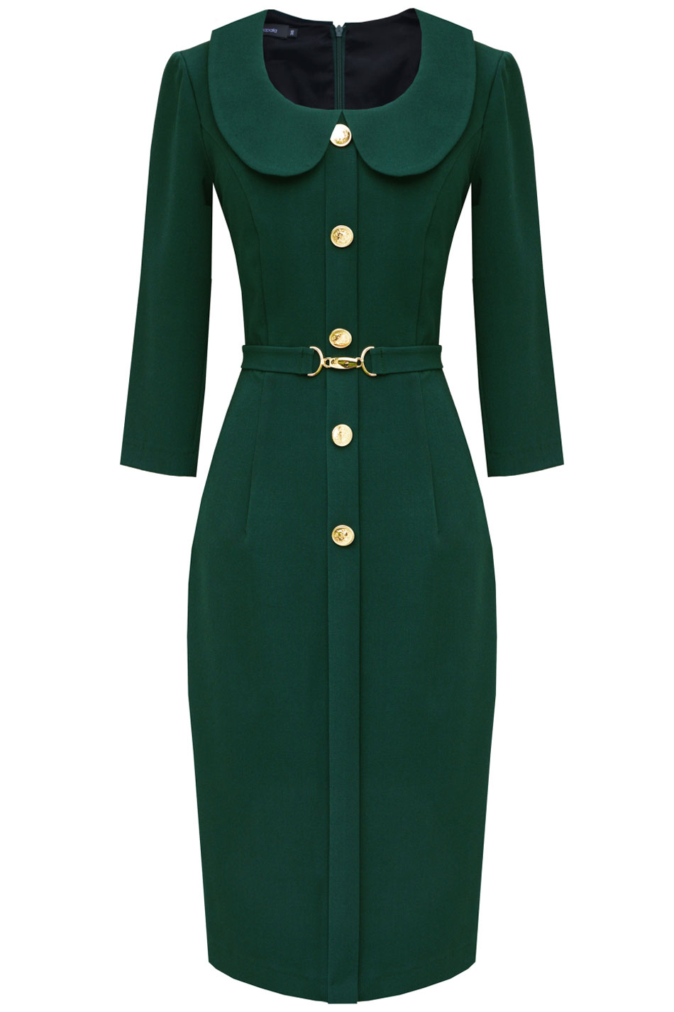 Sukienka marki Kasia Zapała to zawsze gwarancja najwyższej jakości! Model Rania w zielonym/ morskim kolorze to esencja subtelnej elegancji i wyrafinowanej kobiecości. Sukienka została uszyta z miękkiej mieszanki wiskozy i poliestru, co zapewnia wyjątkowy komfort noszenia. Ma dopasowany, ołówkowy fason o długości do kolan oraz głębszy, okrągły dekolt zakończony małym kołnierzykiem. Rękawy o długości 3/4 nadają jej lekkości, a przód zdobi elegancka zakładka z przyszytymi złotymi, włoskimi guzikami. Talia została podkreślona paskiem zapinanym na złotą klamerkę, który dodaje całości szyku. Sukienka zapinana jest z tyłu na kryty zamek, a subtelny rozporek z tyłu ułatwia swobodne poruszanie się. Całość została starannie odszyta na elastycznej podszewce, dzięki czemu idealnie dopasowuje się do sylwetki i zapewnia wygodę przez cały dzień. Uniwersalny design oraz klasyczna długość do kolan sprawiają, że Rania sprawdzi się zarówno na formalne okazje, jak i podczas codziennych spotkań czy wyjątkowych wydarzeń. ELENANCJA NA CO DZIEŃ!