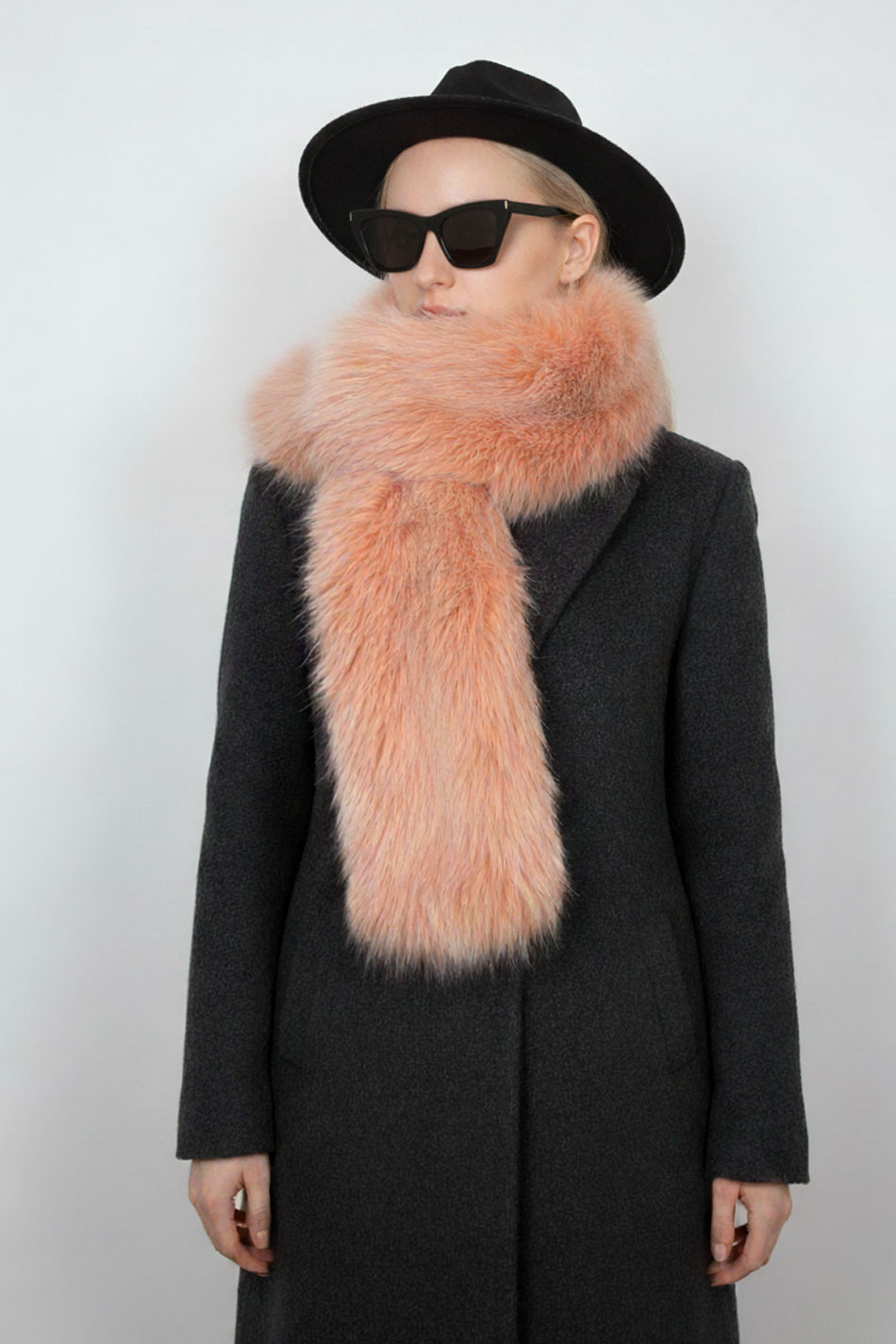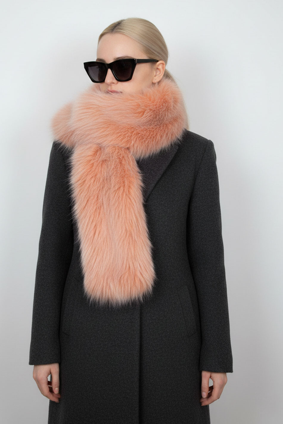 Piękny futrzany szal wykonany z miękkiego, przyjemnego dla skóry sztucznego futra z długim włosem. Szal zachwyca tonalnym przejściem kolorów w stylu ombre – od głębokiego odcienia pomarańczowego po delikatny, pastelowy pomarańcz. Wysokiej jakości materiał idealnie imituje naturalne futro, dodając elegancji i szyku. Idealne zimowe uzupełnienie płaszcza, swetra czy tuniki. Na zdjęciach z modelką prezentowany również w kolorze granatowym.GENIALNY DODATEK NADAJĄCY CHARAKTERU!